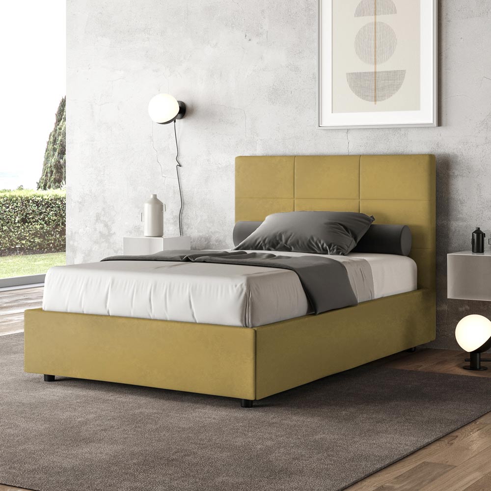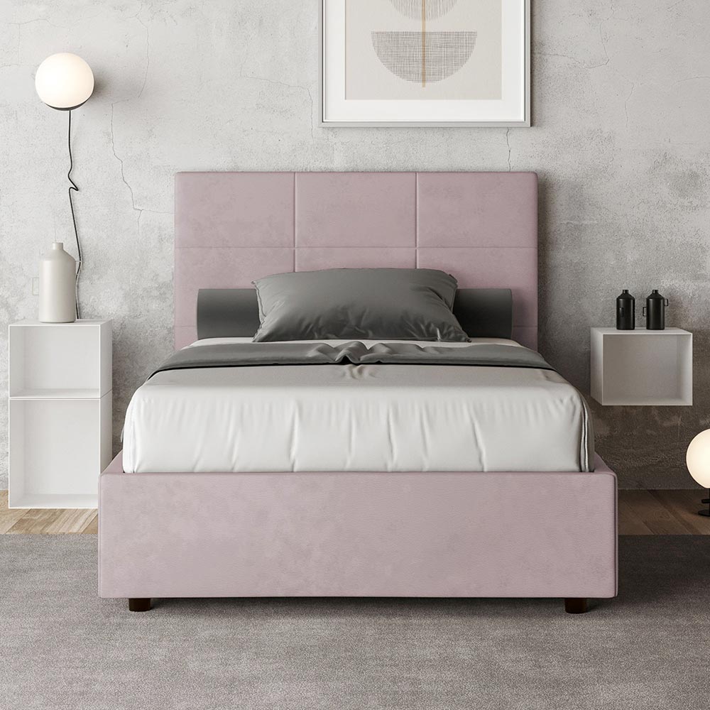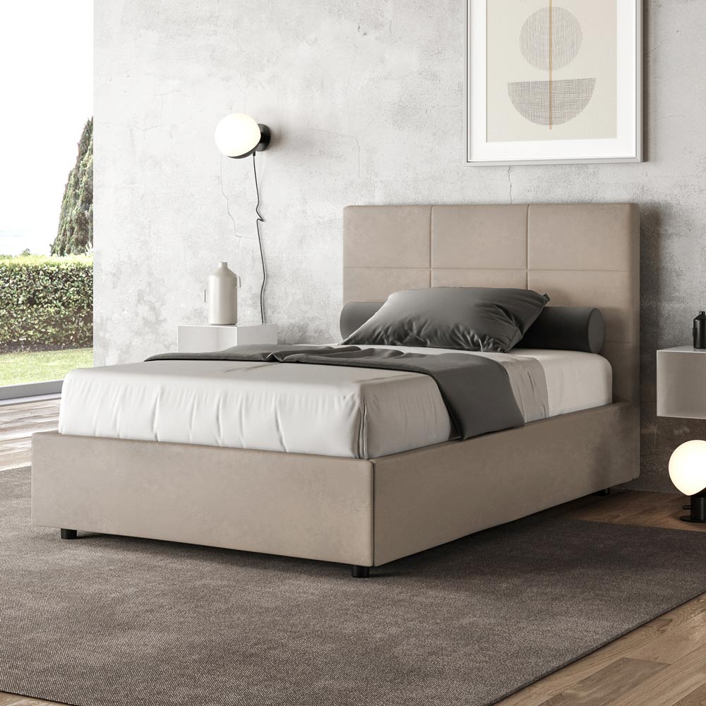 Queensize-Bett (120 x 200 cm), gepolstert und mit Mikrofaser bezogen, hergestellt in Italien