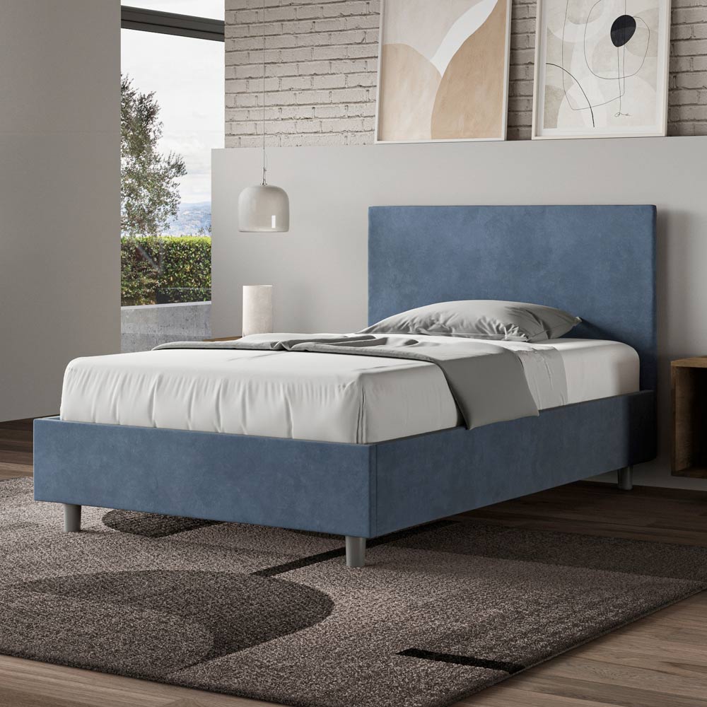 Queensize-Bett (120 x 200 cm), gepolstert und mit Mikrofaser bezogen, hergestellt in Italien