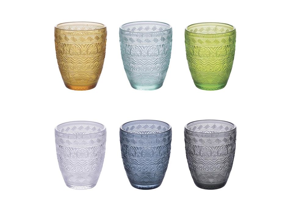 Dieses Set aus 12 Gläsern ist eine wahre Ode an Handwerkskunst und Farbe. Mit einem antiken griechischen Motiv eingraviert, bieten sie einen Sprung in die Geschichte mit einem modernen Touch. Die Farbpalette, vom Bernstein der untergehenden Sonne bis zum Grün der üppigen Natur , über das raffinierte Grau des Steins und das tiefe Blau des Meeres, lädt Sie zu einer sinnlichen Reise durch die mediterrane Palette ein. Jedes Glas ist nicht nur ein Objekt von ästhetischer Schönheit , sondern auch von funktionalem Vergnügen , perfekt für jeden Anlass, von alltäglich bis festlich.