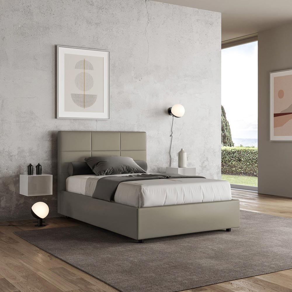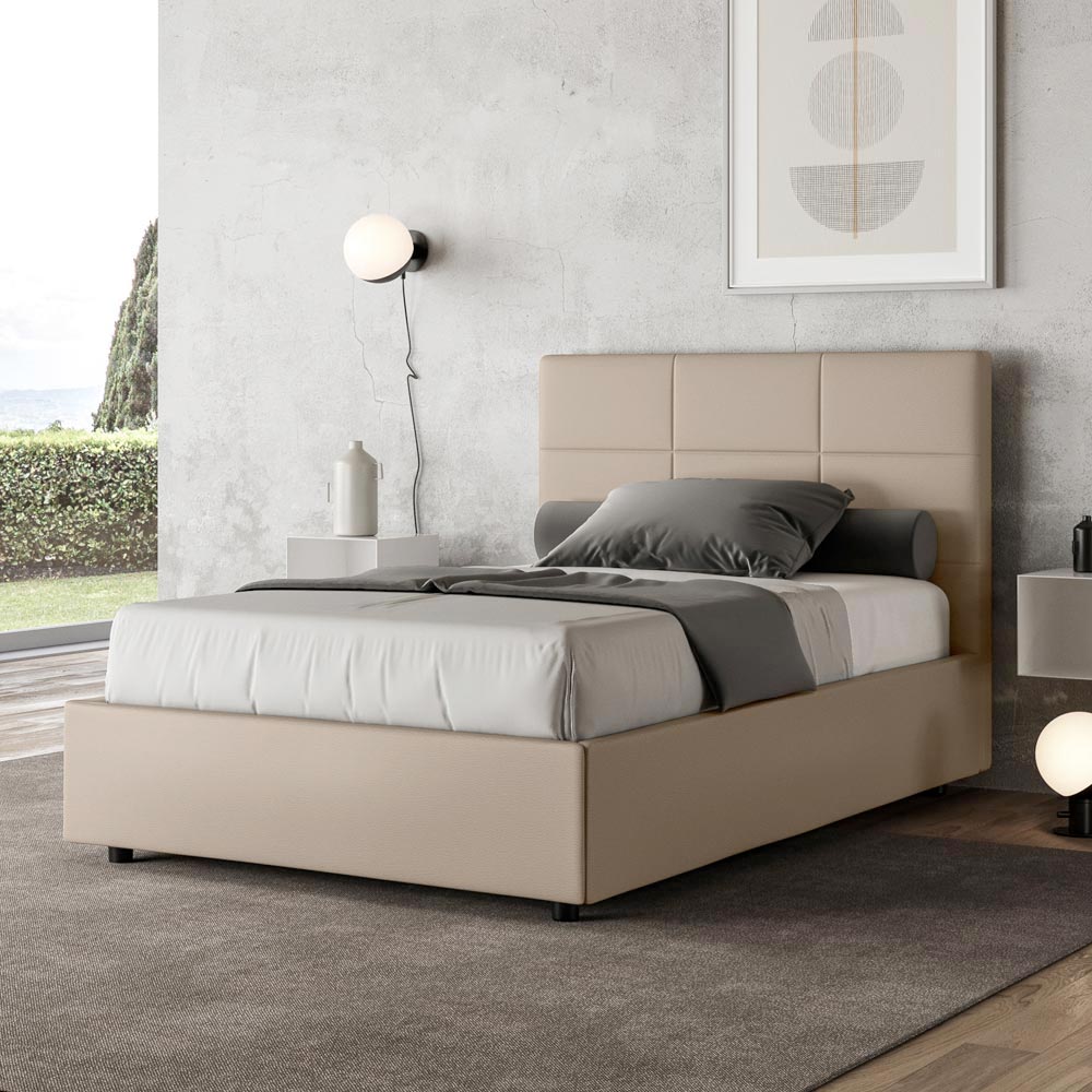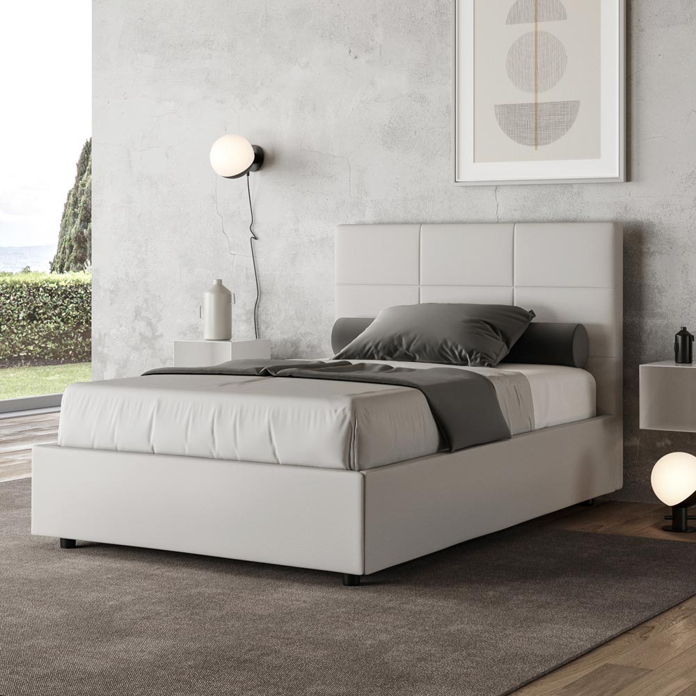 Französisches Bett 140x200 cm, gepolstert und mit Kunstleder bezogen, hergestellt in Italien