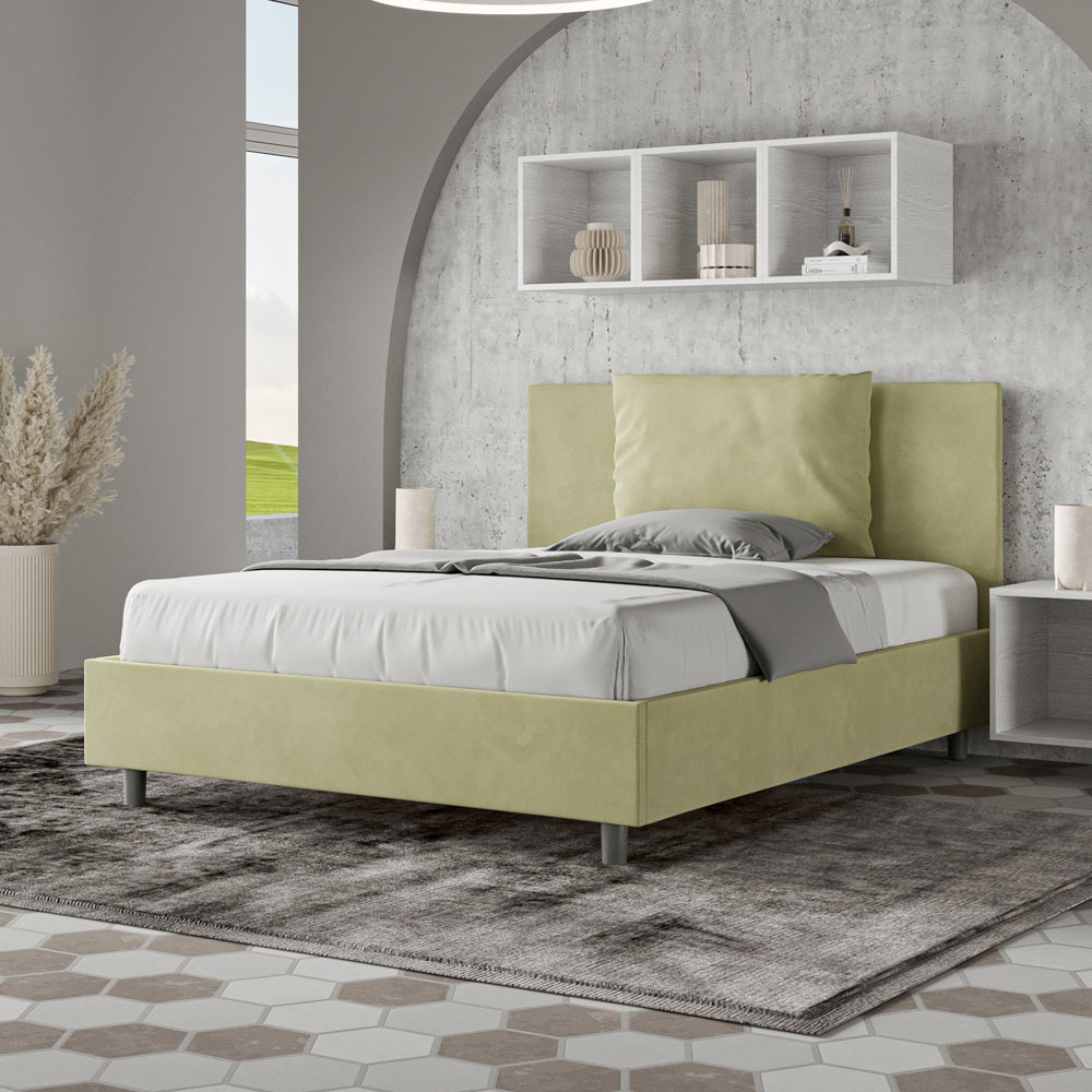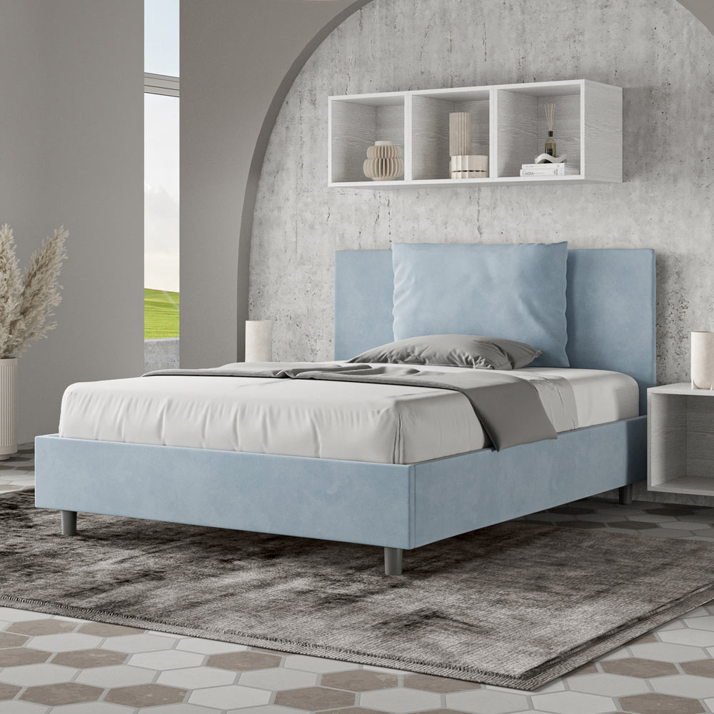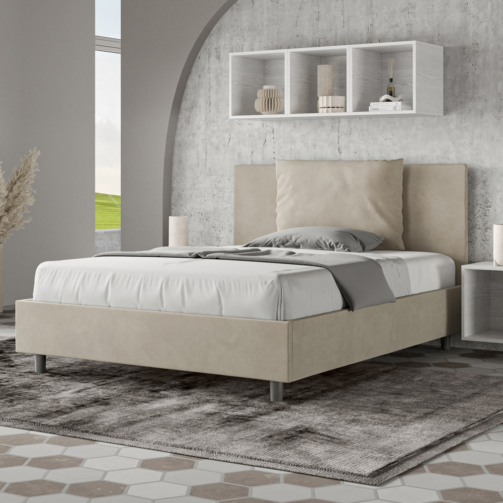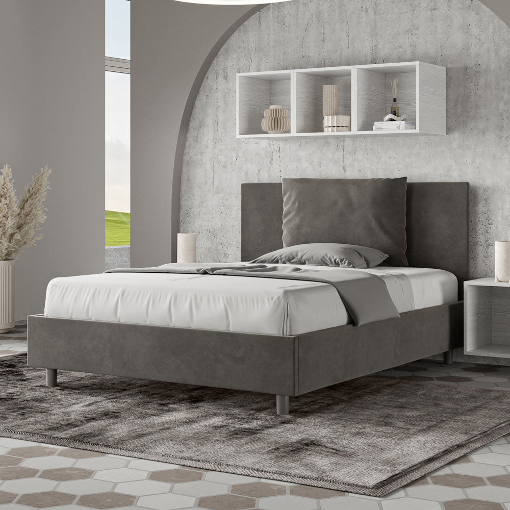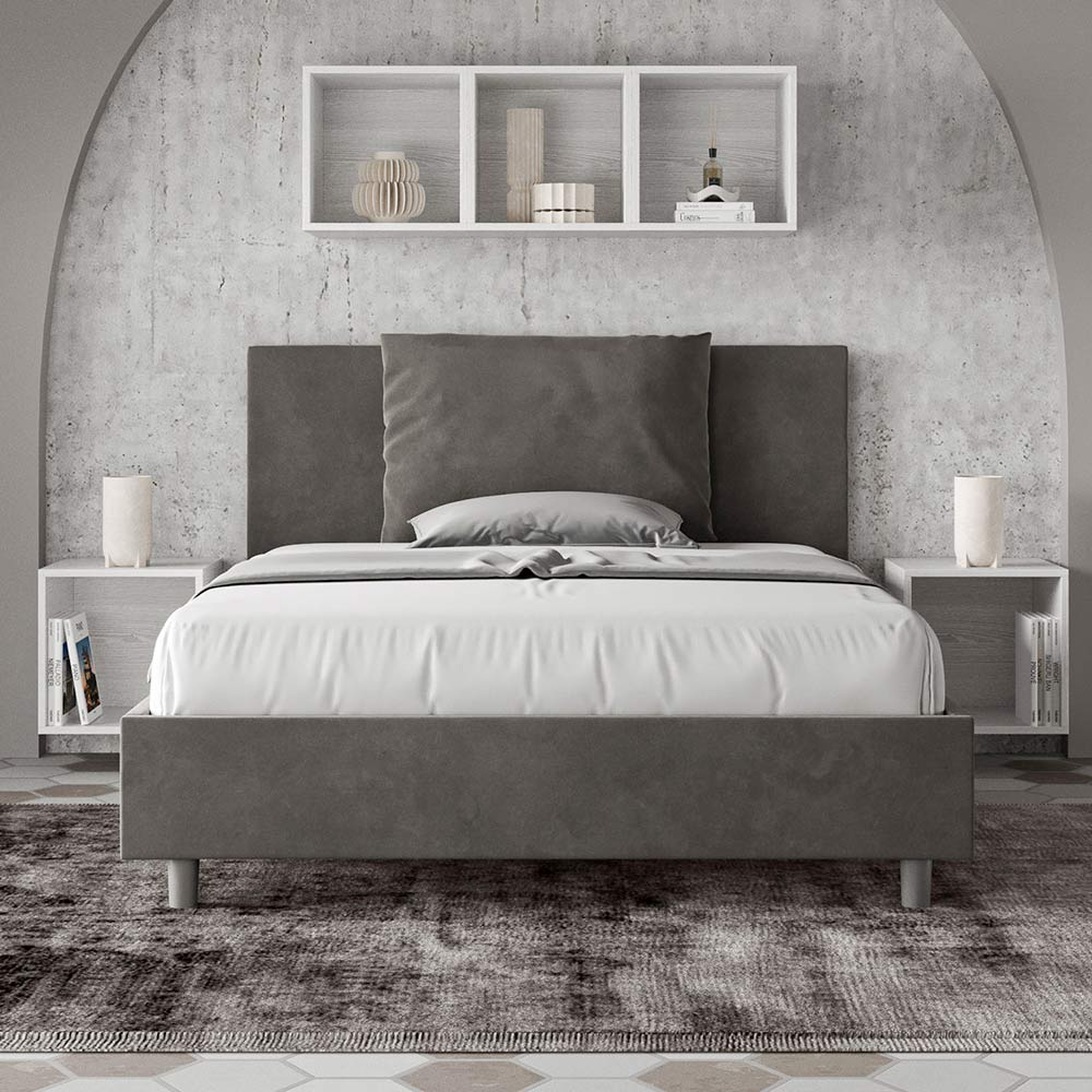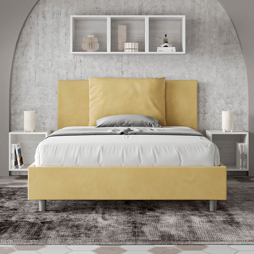Französisches Bett 140x200 cm, gepolstert und mit Mikrofaser bezogen, hergestellt in Italien