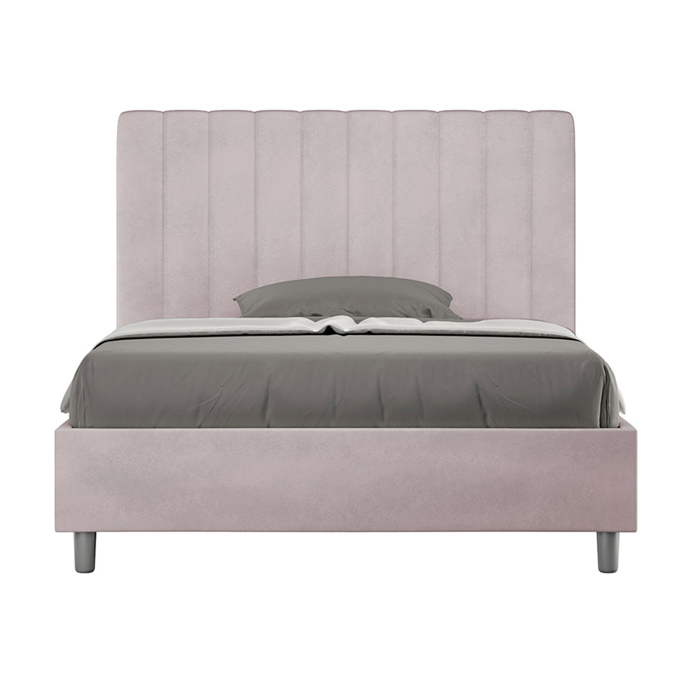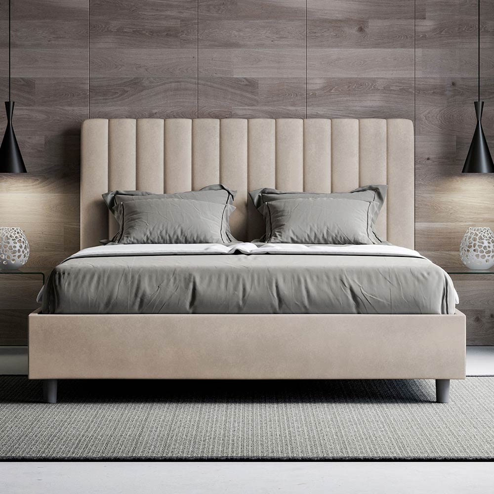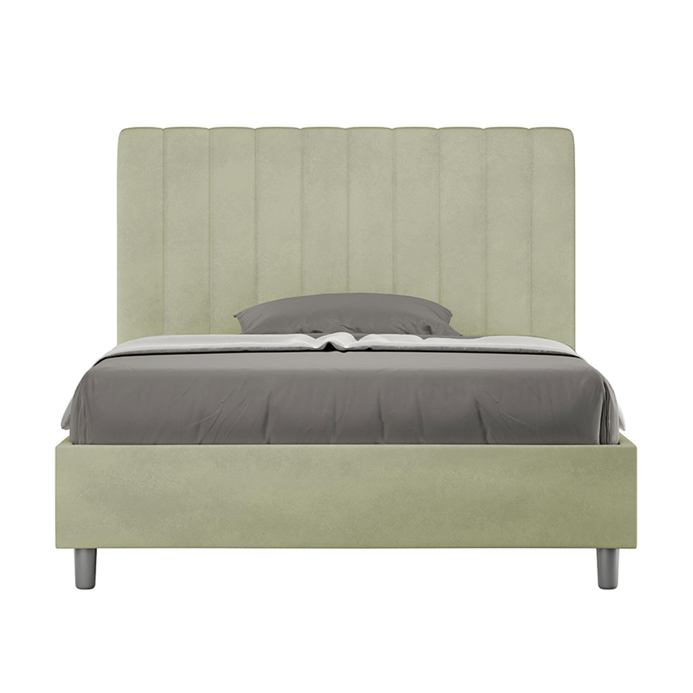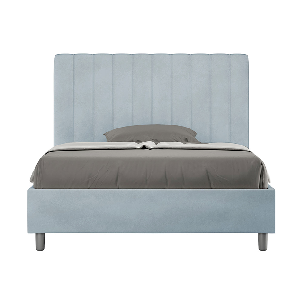 Französisches Bett 140x200 cm, gepolstert aus Melaminplatten und mit Mikrofaser bezogen, vollständig Made in Italy. Dieses französische Bett mit gepolstertem Bettrahmen ist ideal für alle, die ein ausdrucksstarkes Möbelstück suchen, ohne dass es zu aufdringlich wirkt. Das minimalistische Kopfteil mit seiner dezenten Steppung aus symmetrischen, vertikalen Linien fügt sich harmonisch in jedes Ambiente ein, ob modern oder klassisch.