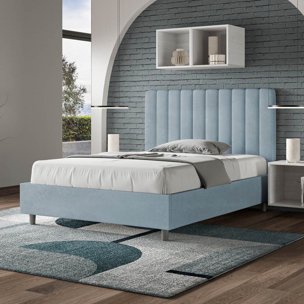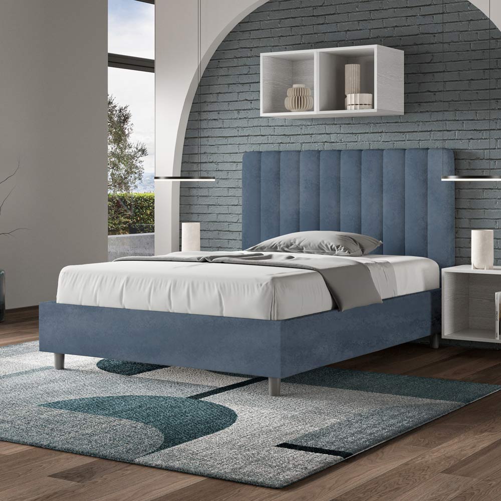 Französisches Bett 140x200 cm, gepolstert und mit Mikrofaser bezogen, hergestellt in Italien