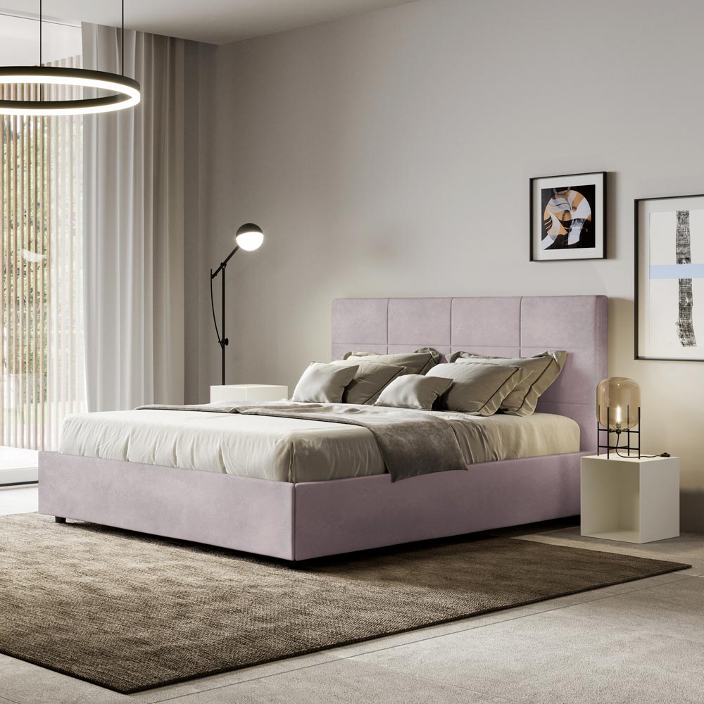 Gepolstertes Doppelbett (160 x 200 cm) aus Spanplatten mit Mikrofaserbezug , vollständig Made in Italy. Dieses Bett mit seinem gepolsterten Rahmen ist das perfekte Beispiel dafür, wie Eleganz und Komfort in einem einzigen Möbelstück vereint werden können. Dieses Modell zeichnet sich durch sein mit Stoffen verziertes Kopfteil aus.Rechteckige geometrische Muster . Mit Mikrofaser bezogen, ist es leicht sauber zu halten: Verwenden Sie einfach ein Mikrofasertuch für eine schnelle und effektive Reinigung.