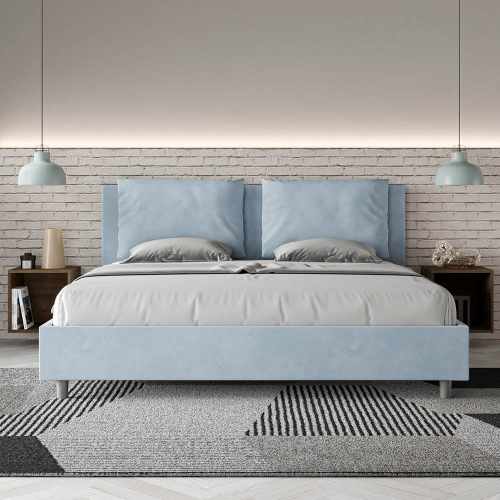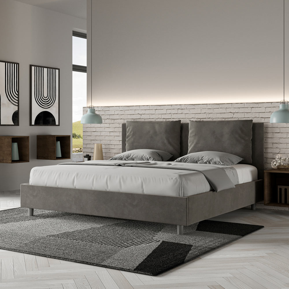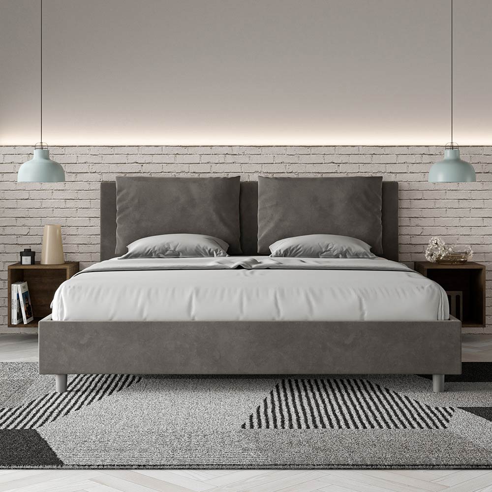 Kingsize-Bett 190x200 cm, gepolstert aus Melaminplatten und mit Mikrofaser bezogen, vollständig in Italien hergestellt. Dieses Kingsize-Bett mit gepolstertem Rahmen vereint die Vorteile eines Polsterbetts: Komfort, modernes Design, Funktionalität und optimale Raumnutzung . Das breite, gepolsterte Kopfteil bietet eine gemütliche Leseecke oder einen bequemen Fernsehplatz und wertet Ihr Schlafzimmer auf. Das elegante und stilvolle Bett ist mit Mikrofaser bezogen und lässt sich daher schnell und einfach reinigen: Wischen Sie es einfach mit einem Mikrofasertuch ab, um es strahlend sauber zu halten.