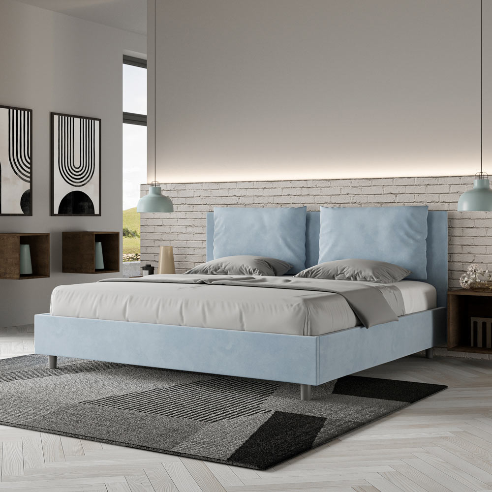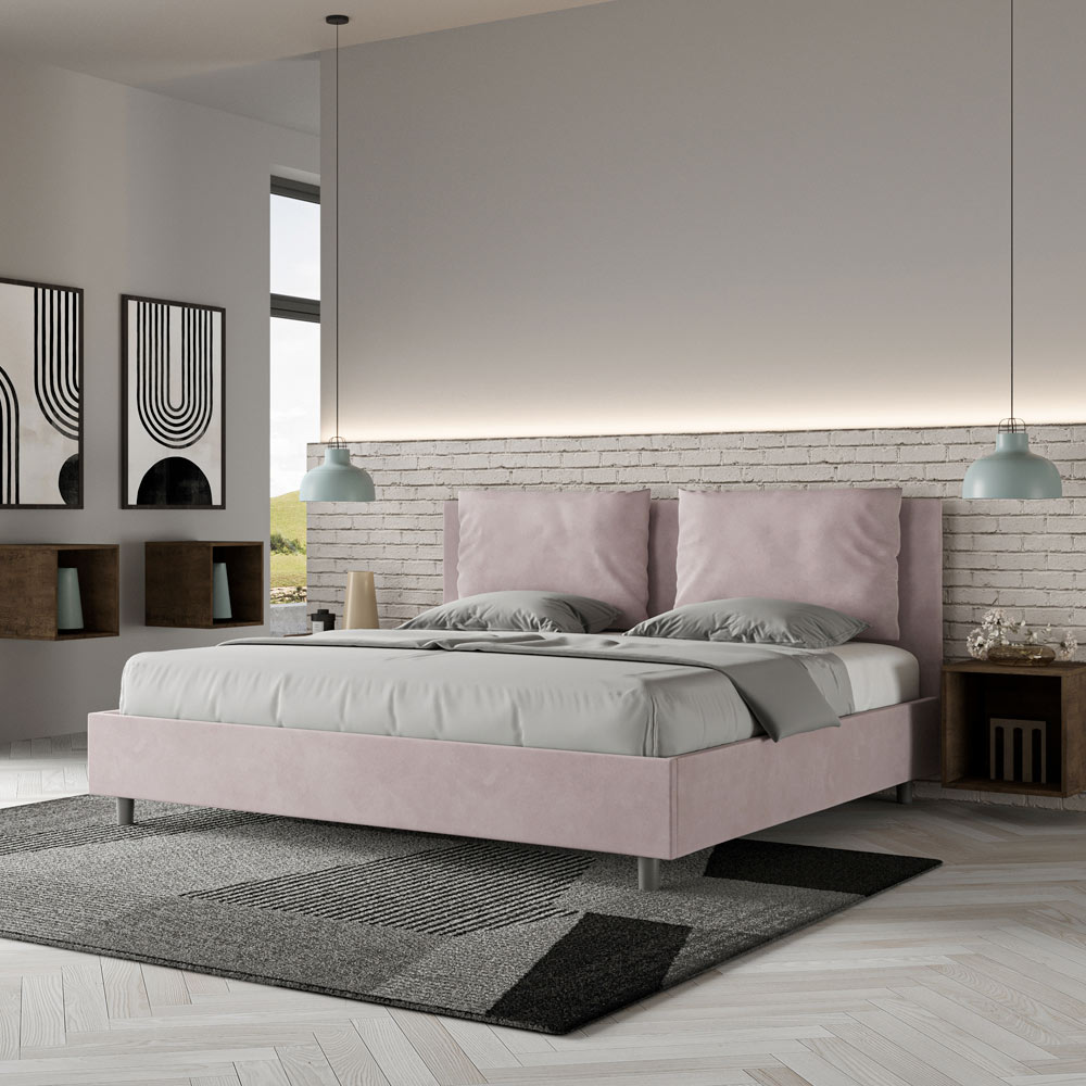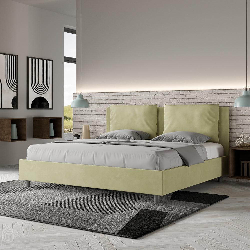 Kingsize-Bett (190 x 200 cm), gepolstert und mit Mikrofaser bezogen, hergestellt in Italien