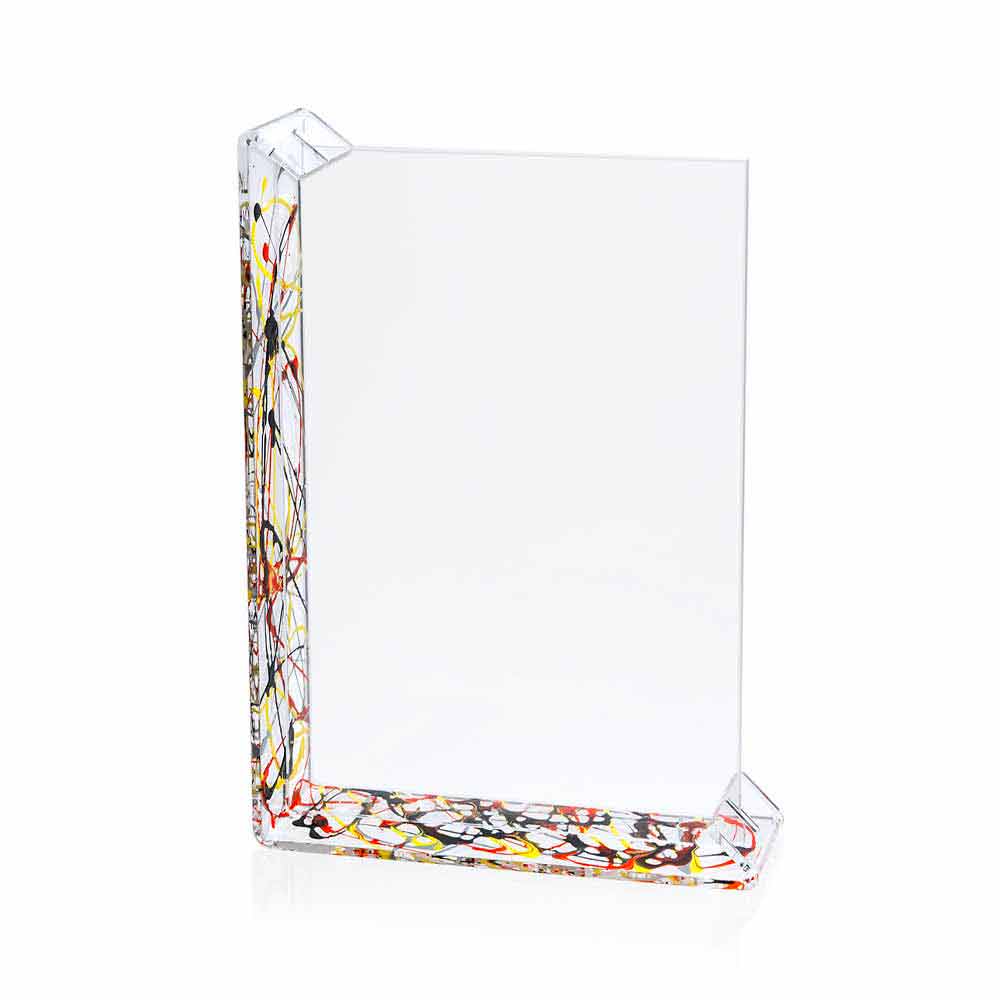 2 Fotorahmen mit mehreren Tischen aus farbigem Plexiglas oder mit Holz, modernes Laserdesign, hergestellt in Italien.