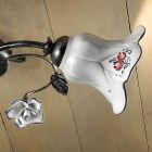 2-flammige Deckenlampe aus Metall und Keramik mit handgemalten Rosen, hergestellt in Italien von Ferroluce.