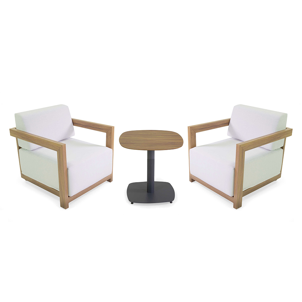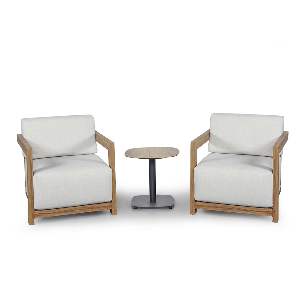 Dieses Lounge-Set ist die Verkörperung zeitgenössischer Eleganz, perfekt für die Schaffung einer einladenden und raffinierten Atmosphäre in jedem Außenbereich. Jedes Stück kombiniert klare Linien und hochwertige Materialien , mit einem stabilen Holzrahmen und gemütlichen Kissen aus wetterfestem Stoff, die lang anhaltenden Komfort und minimale Pflege garantieren.