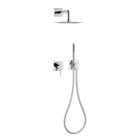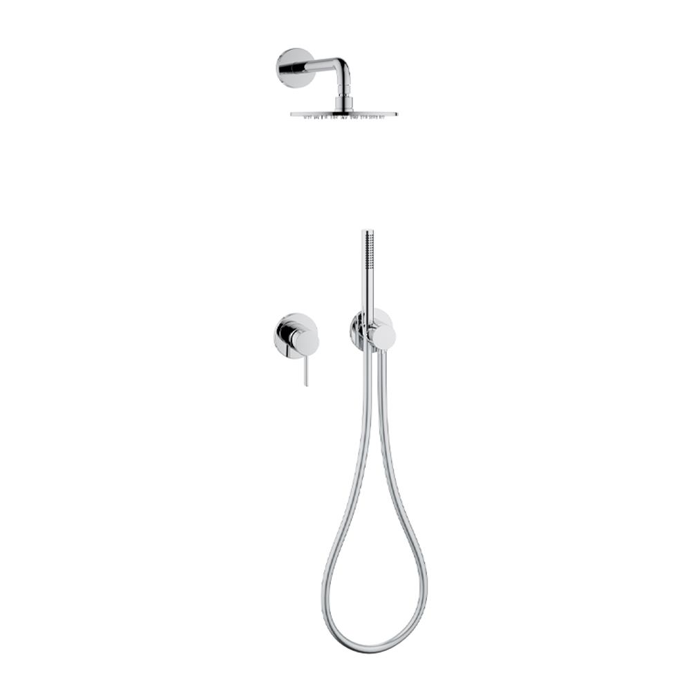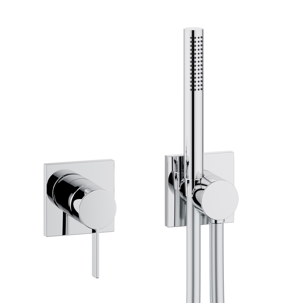 Diese Innendusche mit Zwei-Wege-Montage mit Einhebelmischer, Schlauchanschluss, Handbrausehalter und Brausekopf hat ein schlichtes und minimalistisches Design mit wahlweise runder oder eckiger Rosette und ist komplett aus verchromtem Messing gefertigt . Das Ergebnis ist ein kleines Modul, das sich durch ein intelligentes Konzentrat innovativer Technik in radikalem und minimalistischem Design auszeichnet: Mischer und Schlauchanschluss sind auf einzigartige Weise verbunden für minimalen Installationsaufwand und maximalen Funktionskomfort.