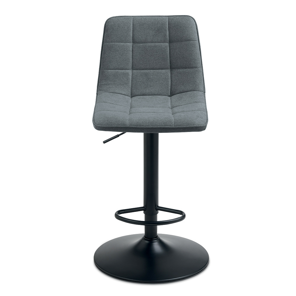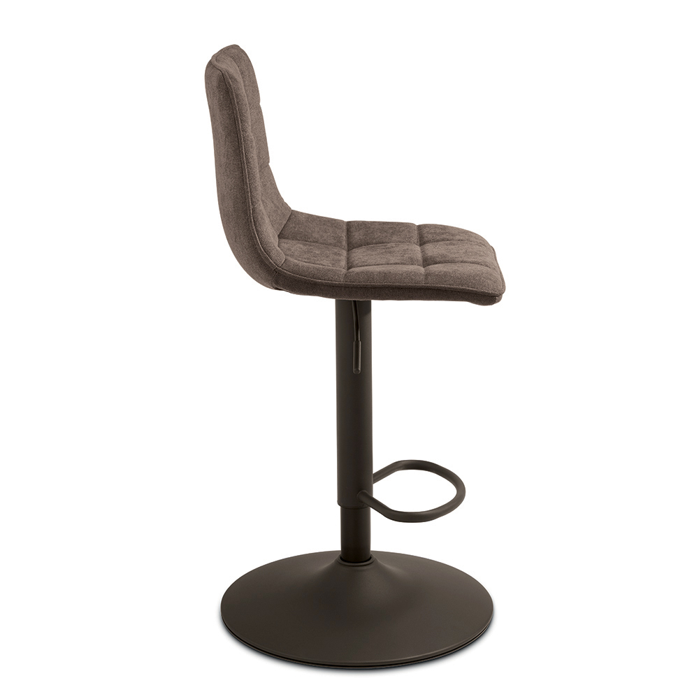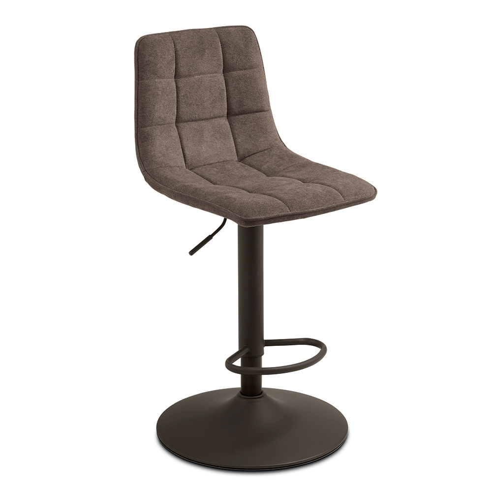 Ein elegantes Set aus zwei Drehhockern im modernen Design, ideal für die stilvolle Einrichtung einer Kücheninsel , einer Frühstücksbar oder moderner Wohnräume. Der gepolsterte Stoffsitz bietet Komfort und ein einladendes Ambiente, während das lackierte Metallgestell für Stabilität und Langlebigkeit sorgt.