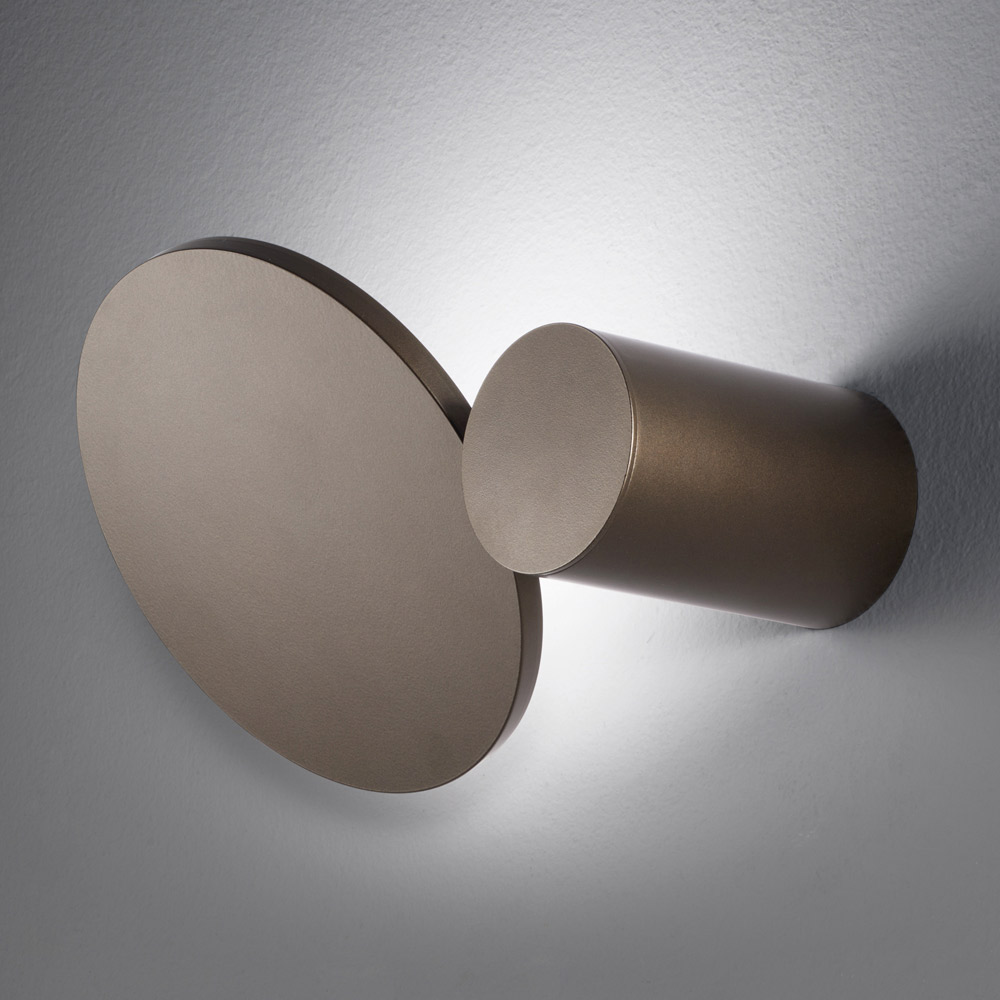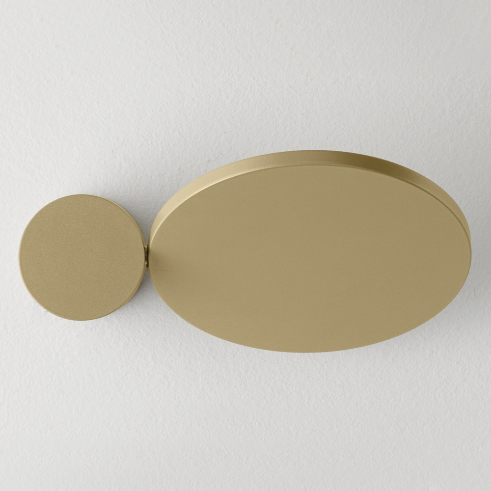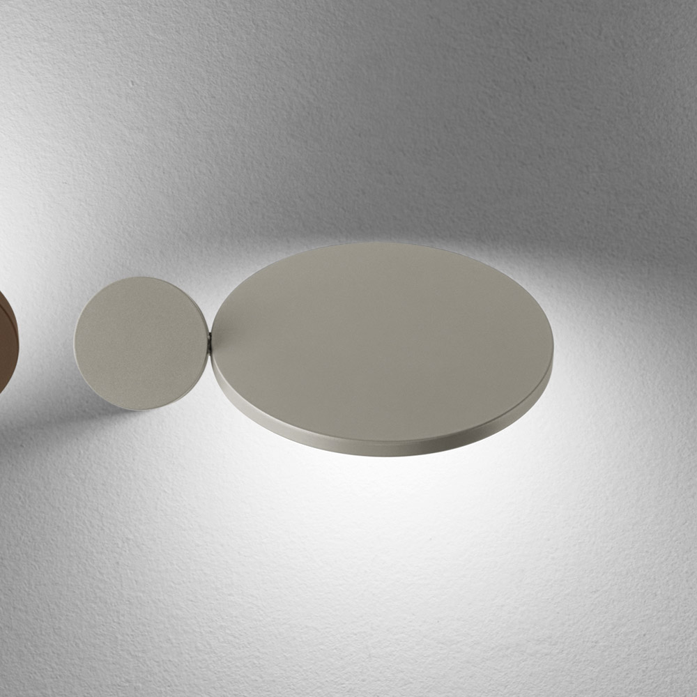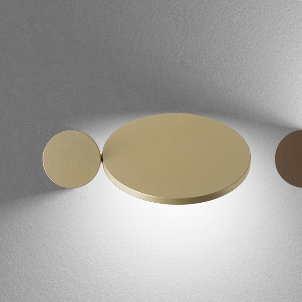 Diese Wandleuchte ist ein wahres leuchtendes Kunstwerk , das grafisches Design und dekorative Funktion in einer einzigen Geste vereint. Sie besteht aus essentiellen geometrischen Formen und spielt mit überlappenden Scheiben und Ovalen , die beim Einschalten einen sanften und dramatischen Lichteffekt an der Wand erzeugen.