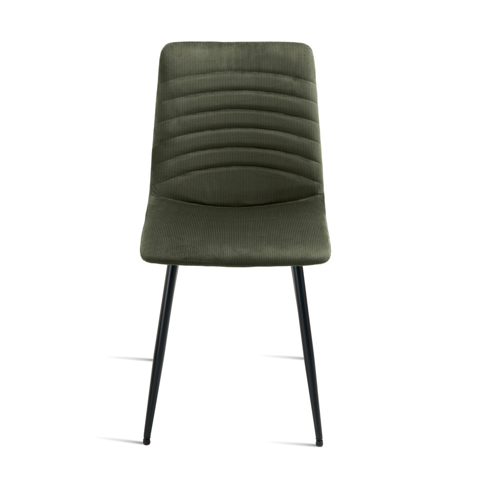 Ein elegantes Set aus vier gepolsterten Stühlen in modernem Design, ideal für die stilvolle Einrichtung Ihres Esszimmers , Wohnzimmers oder Aufenthaltsraums. Der gerippte Stoffbezug bietet eine angenehme, weiche Haptik und verleiht den Stühlen eine edle, strukturierte Optik.