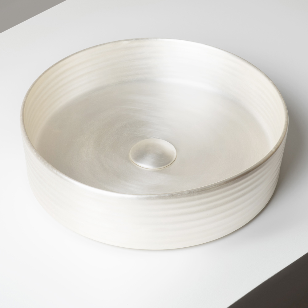 Aufsatzwaschbecken aus silbernem oder weißem Feinsteinzeug - Vibration