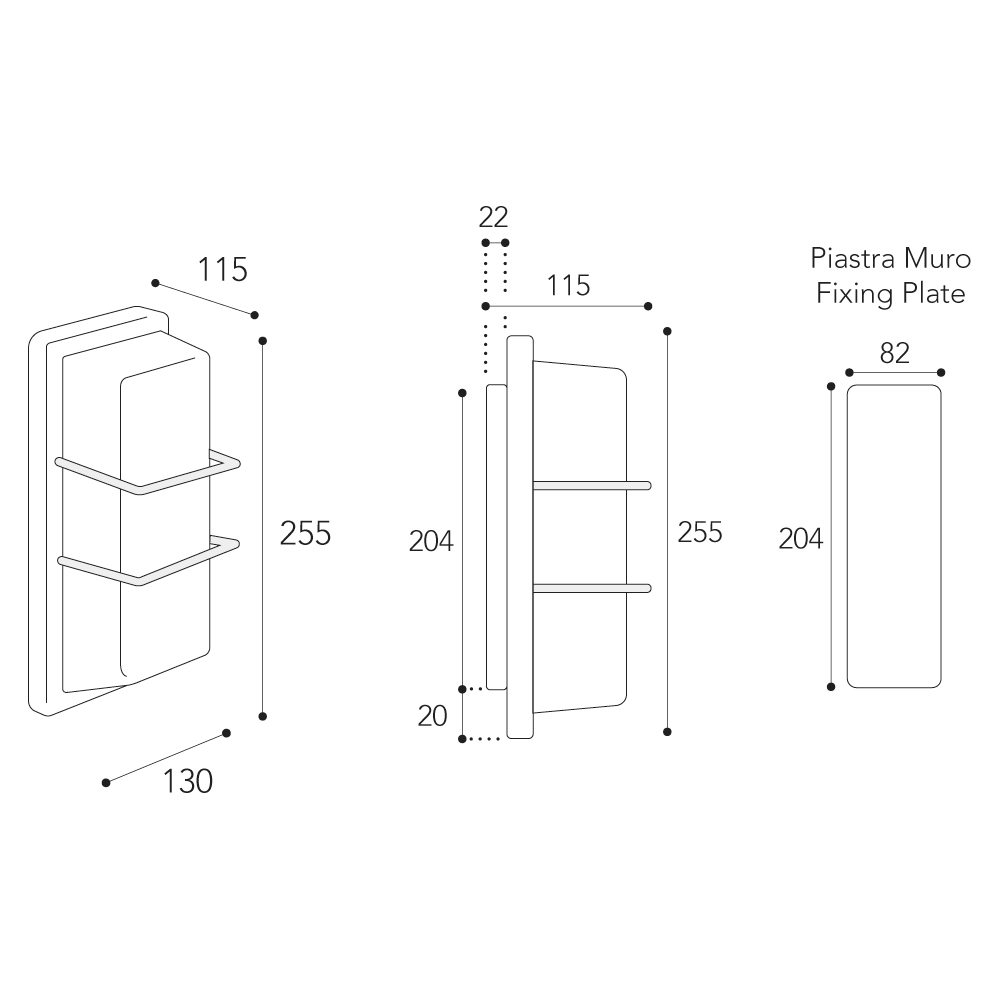 • Wandplatte: 20,4 × 8,2 cm