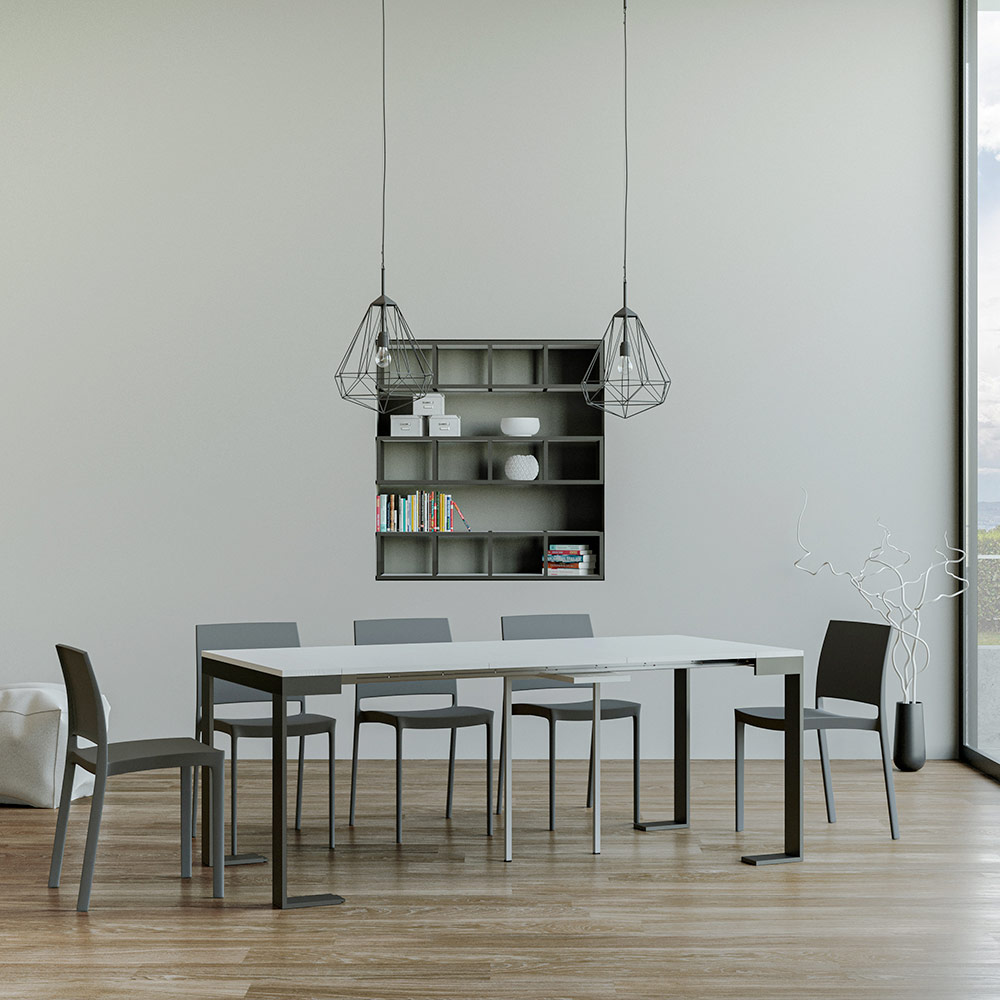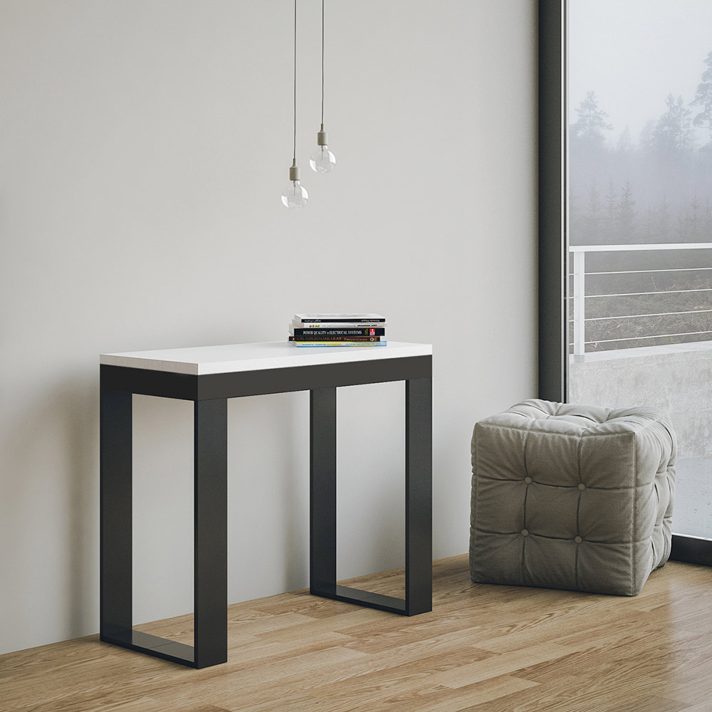 Dieser ausziehbare Konsolentisch è ist ein Beispiel für zeitgenössisches Design, das Eleganz und Praktikabilität miteinander verbindet.