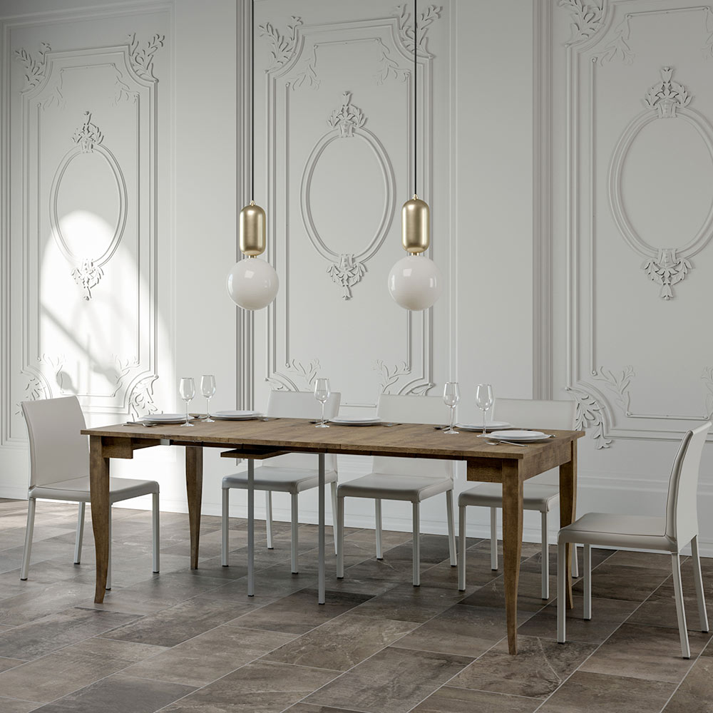 Die ausziehbare Funktionalität dieses Konsolentisches macht ihn zu einem Möbelstück mit großerAnpassungsfähigkeit;, das sich ausdehnen kann, um sich Ihren gesellschaftlichen Momenten anzupassen oder kompakt zu bleiben, wenn Sie mehr Freiraum wünschen. È die ideale Lösung für diejenigen, die nach einem Möbelstück suchen, das schön anzusehen und einfach zu benutzen ist, das jeden Raum in einen gemütlichen und funktionalen Ort verwandeln kann.
