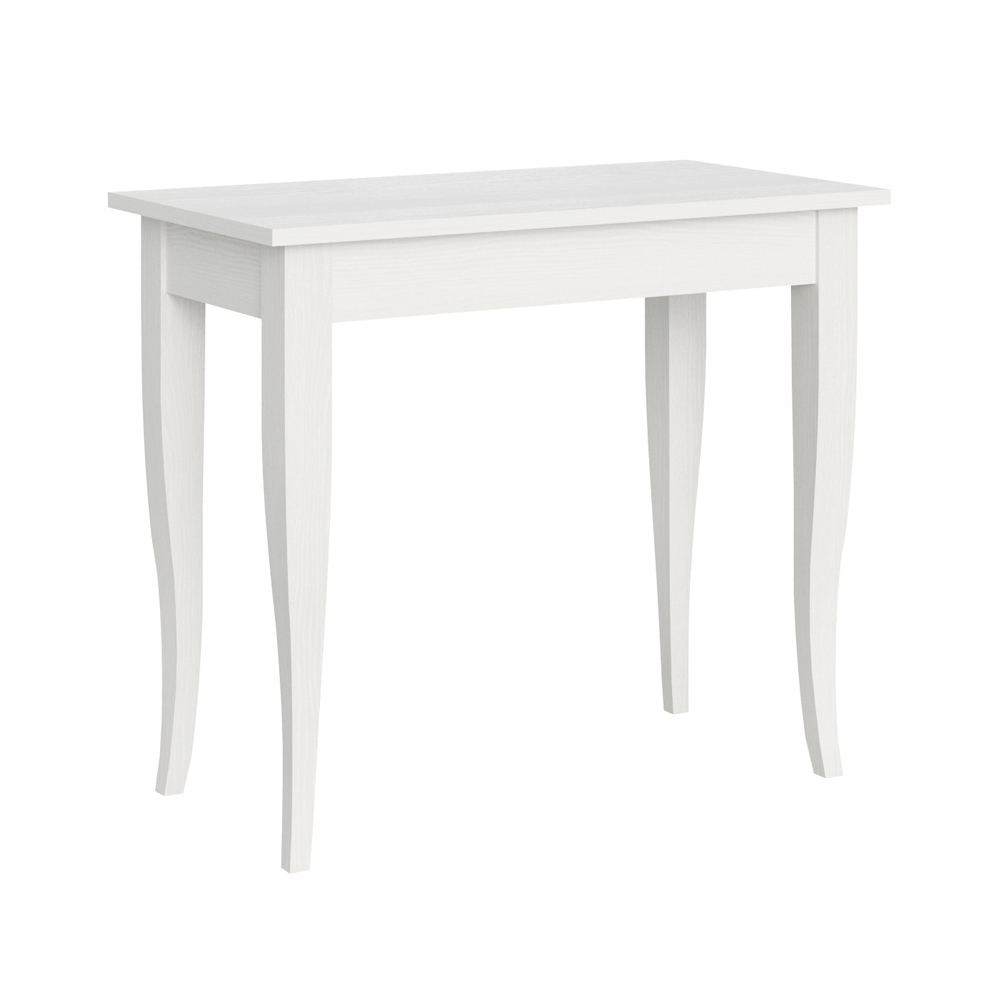 Dieser ausziehbare Konsolentisch è ein Fest der Reinheit und Anmut. Mit seiner wunderschönen Holzplatte erweckt er ein Gefühl von Frische und Geräumigkeit, während die geschwungenen Beine dem Gesamtdesign einen Hauch von fließender Eleganz verleihen.
