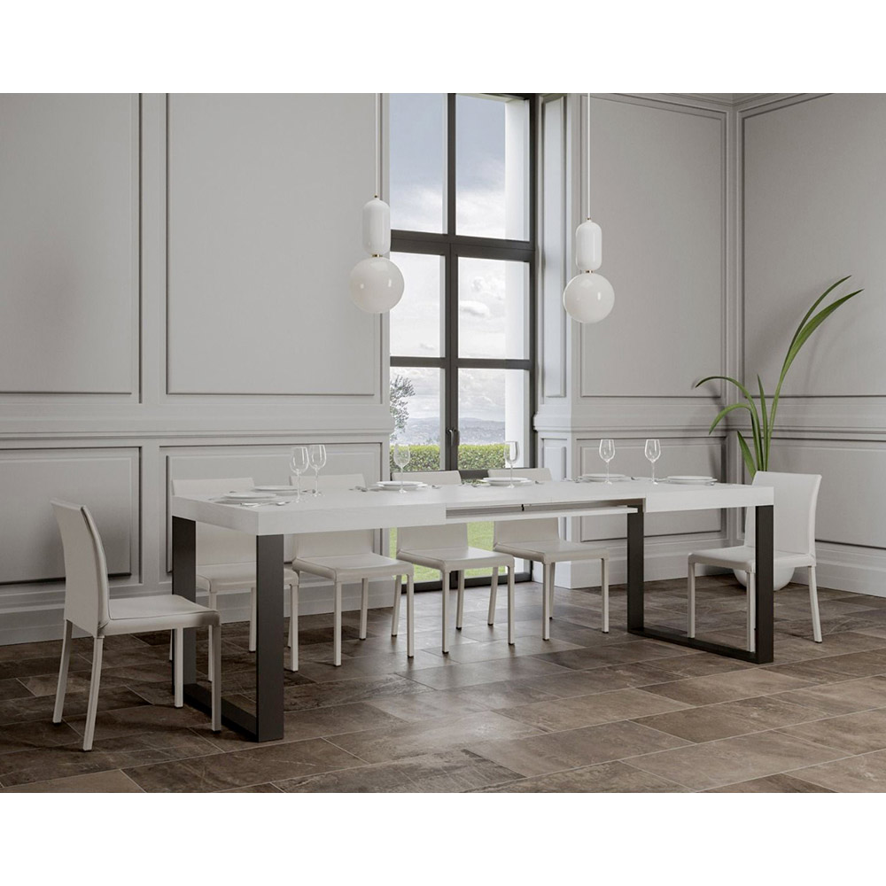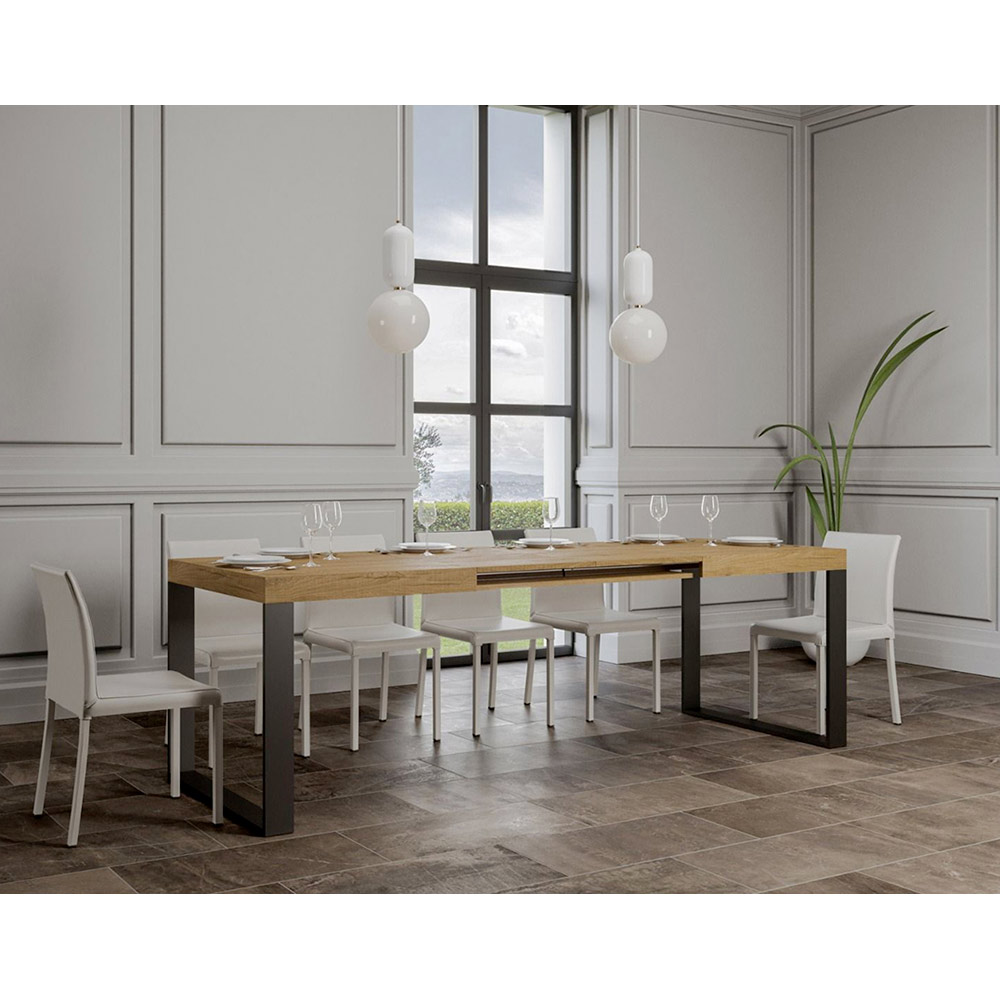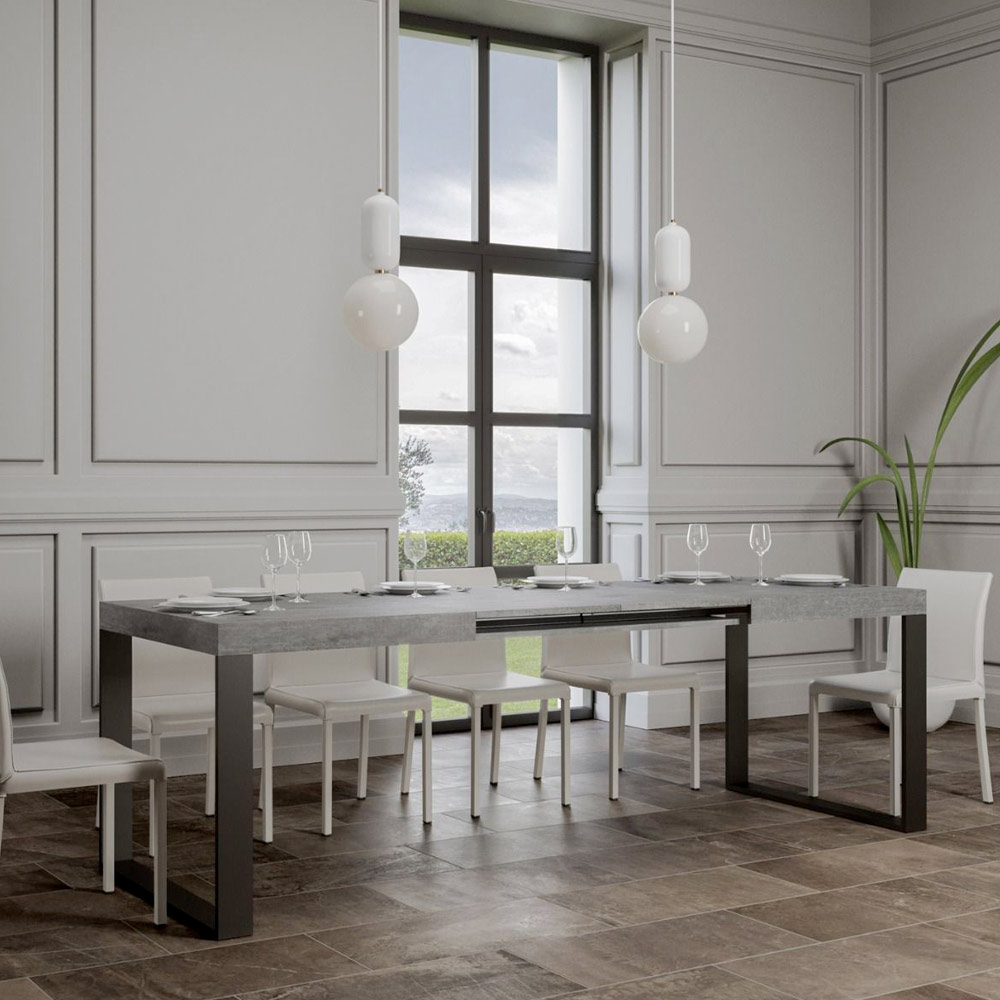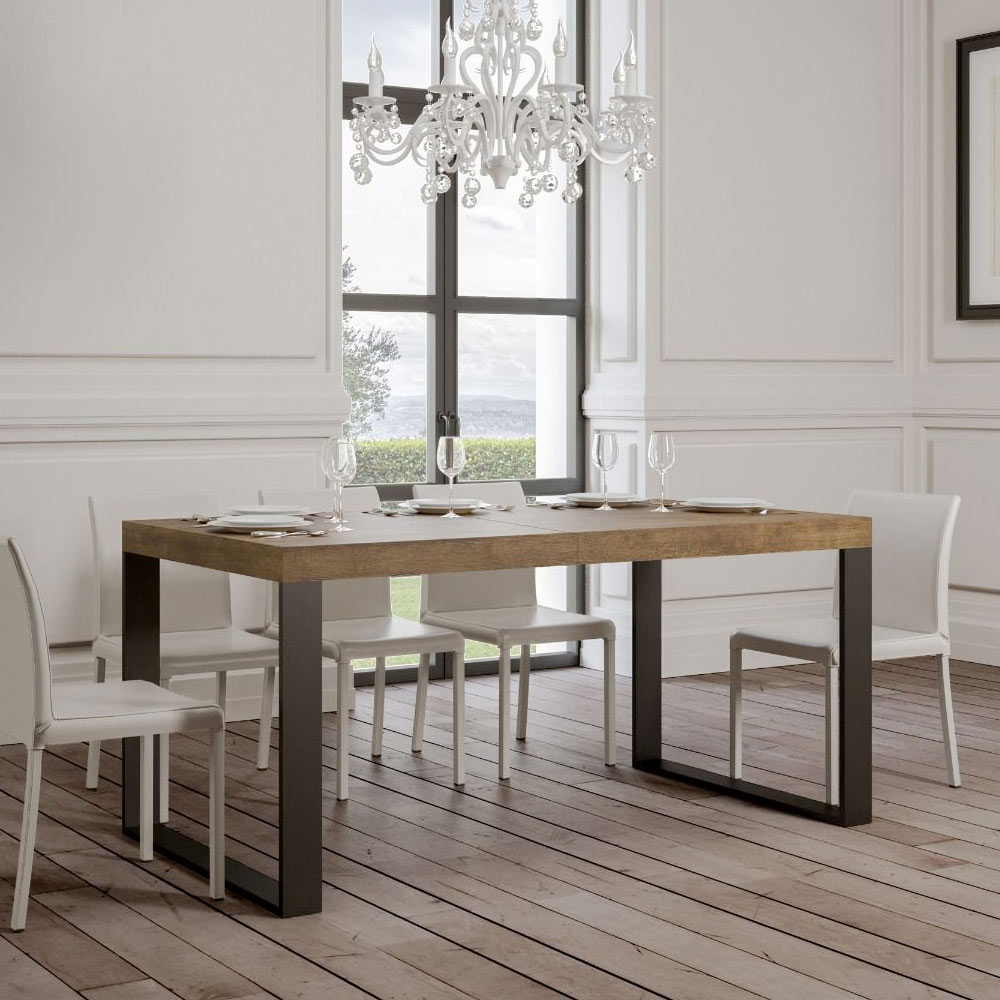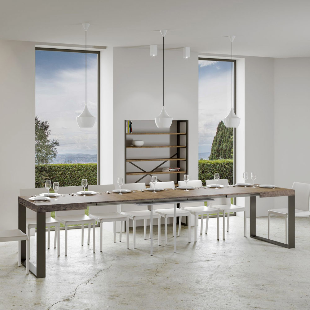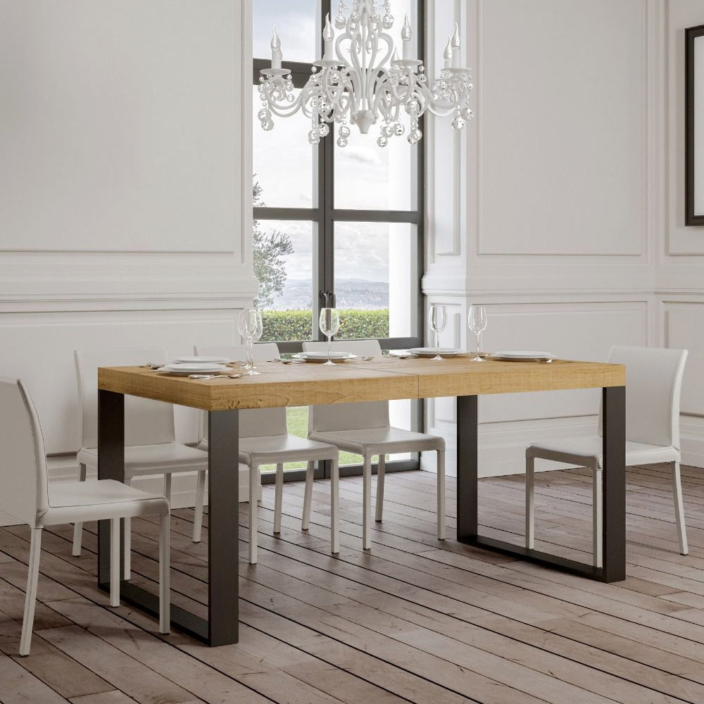 Ausziehbarer Esstisch, Platte aus furniertem Holz, 8 cm dick, und Gestell aus anthrazit lackiertem Eisen,vollständig Made in Italy..
