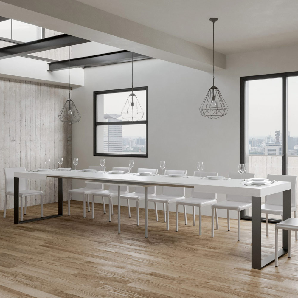 Ausziehbarer Esstisch aus Melaminholz und Eisen, hergestellt in Italien – Badesi