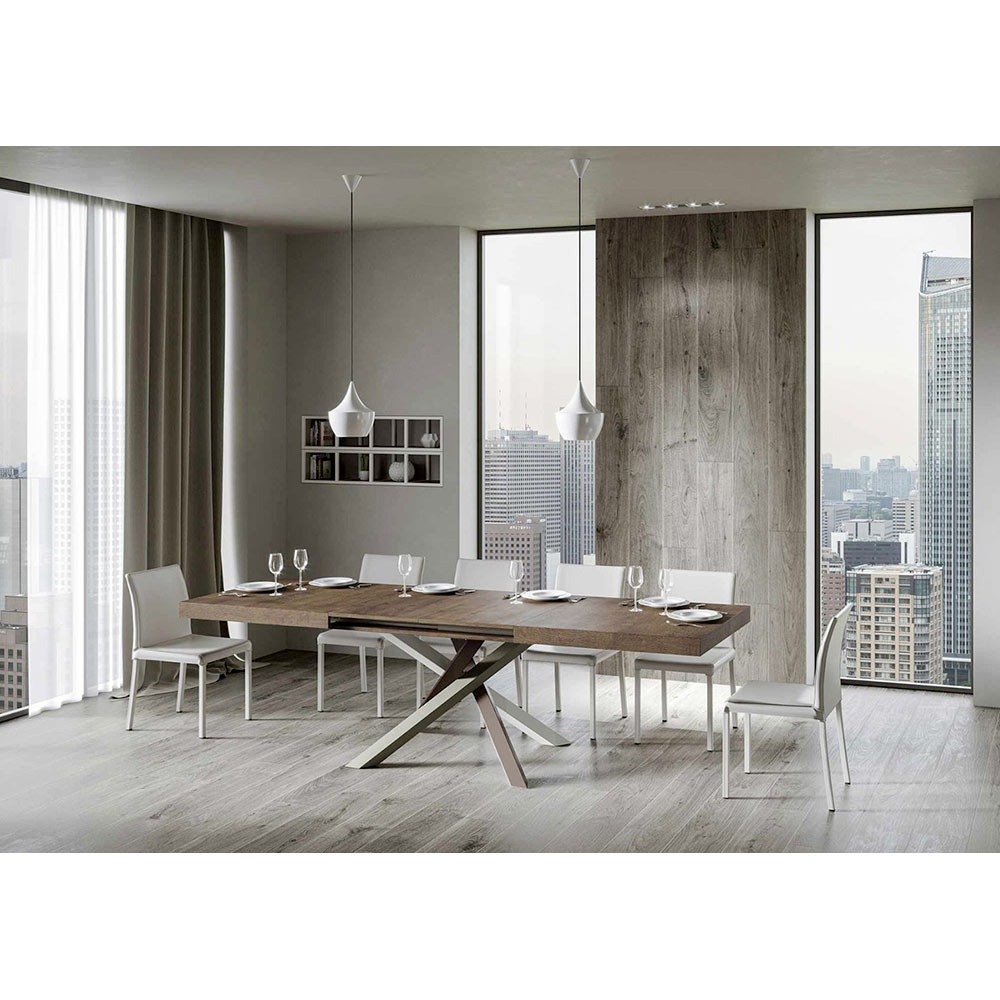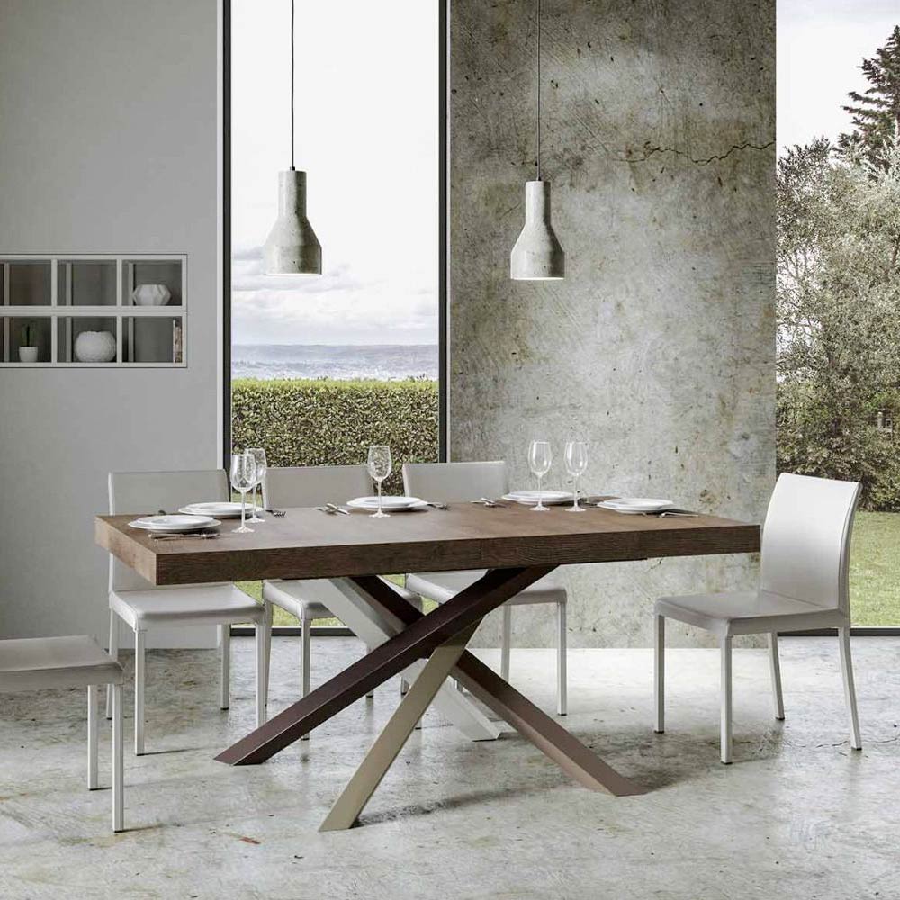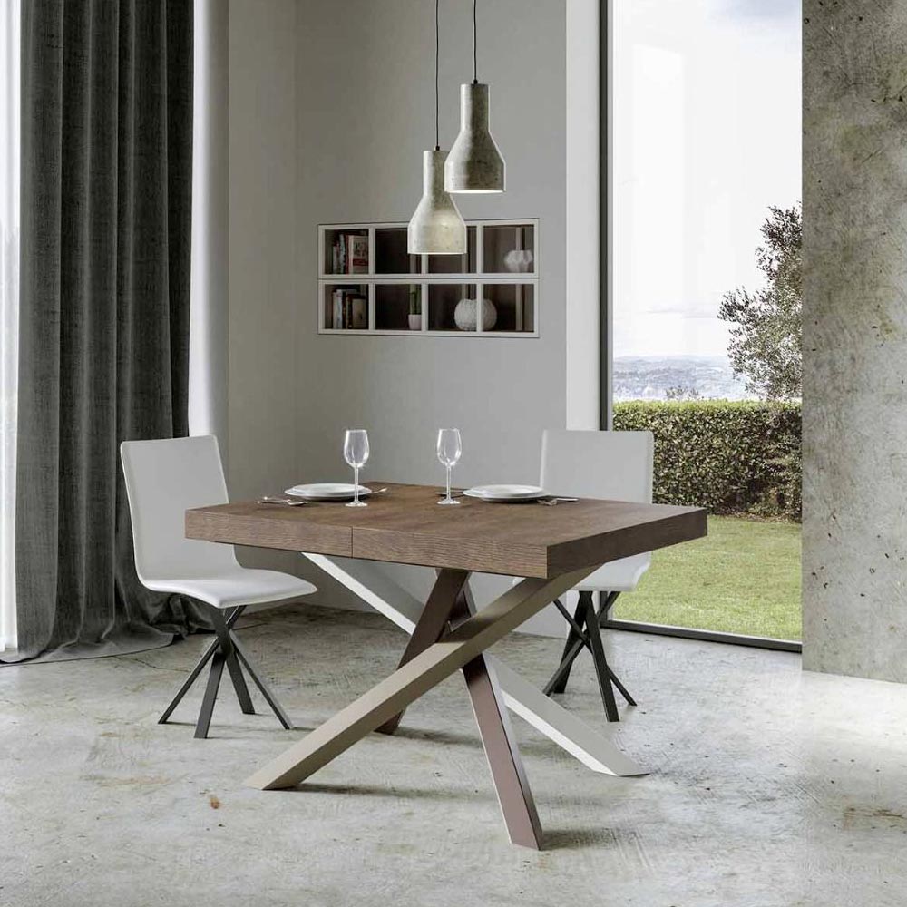 Entdecke den ausziehbaren Tisch, ein Meisterwerk des modernen Designs, das sich durch seine einzigartige Silhouette und vielseitige Funktionalität auszeichnet. Die Holzplatte verleiht dem Raum Helligkeit und bietet eine glatte und robuste Oberfläche, die zum täglichen Gebrauch einlädt. Der Tischfuß ist ein wahres geometrisches Spektakel, mit gekreuzten Beinen, die sich in einem Farbenspiel verflechten. Die vorgeschlagene Kombination ist: Fuß 1: Reinweiß (RAL 9010). Schenkel 2: Blassbraun (RAL 8025). Schenkel 3: Olivgrau (RAL 7002). Schenkel 4: Schokoladenbraun (RAL 8017). RAL-Farben sind opak. Diese Kombination verleiht dem Design nicht nur einen Hauch von Vitalität, sondern sorgt auch für Stabilitätà und Festigkeit. Der Tischauszug ist ebenso einfach wie technisch und ermöglicht die Verwandlung dieses eleganten Möbelstücks von einem praktischen Tisch für vier Personen in einen gemütlichen Bereich für Abendessen und größere Zusammenkünfte.