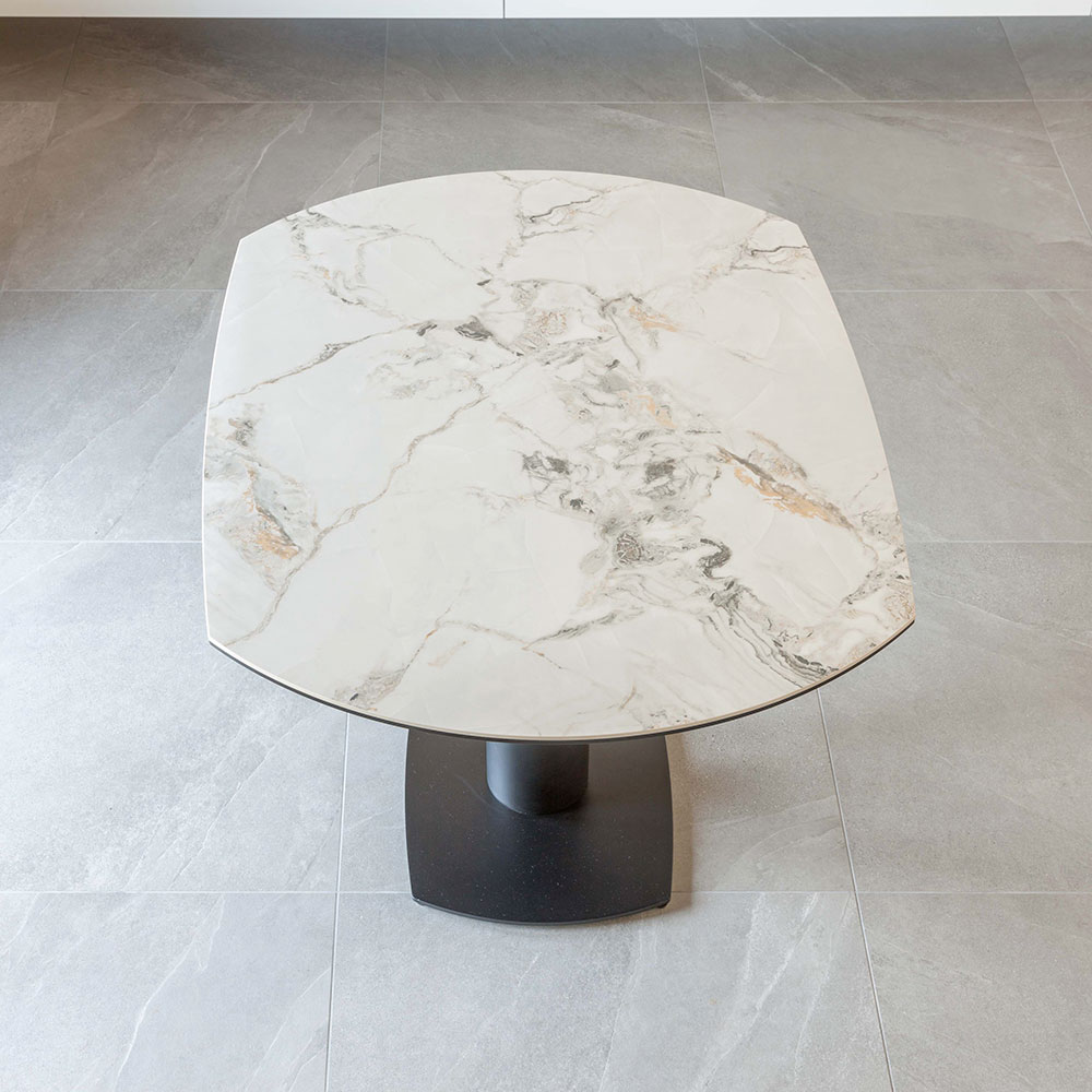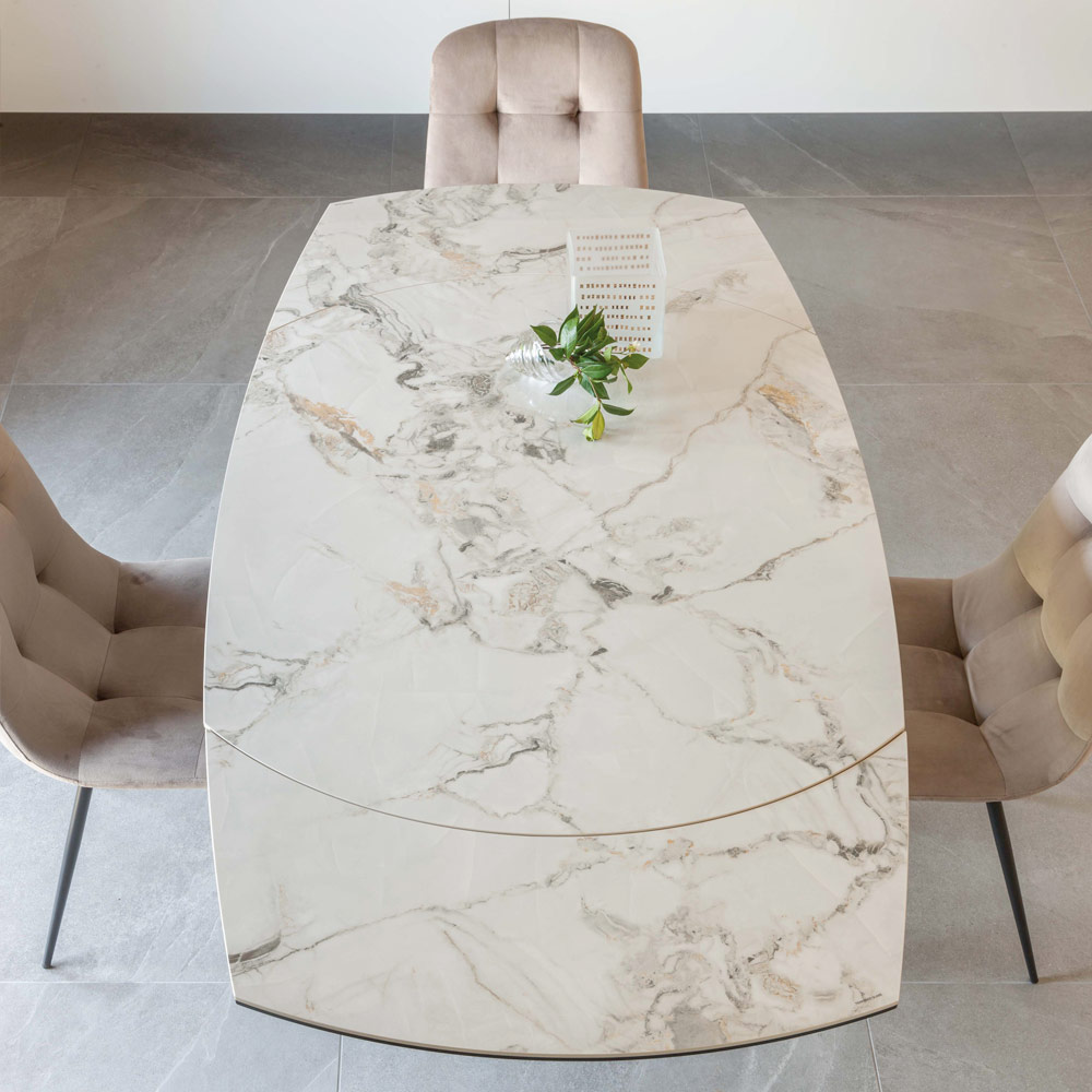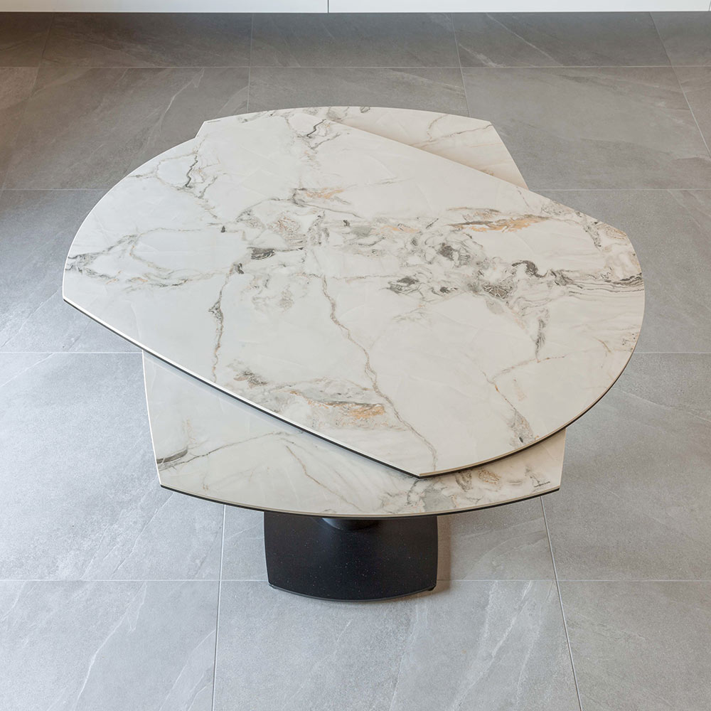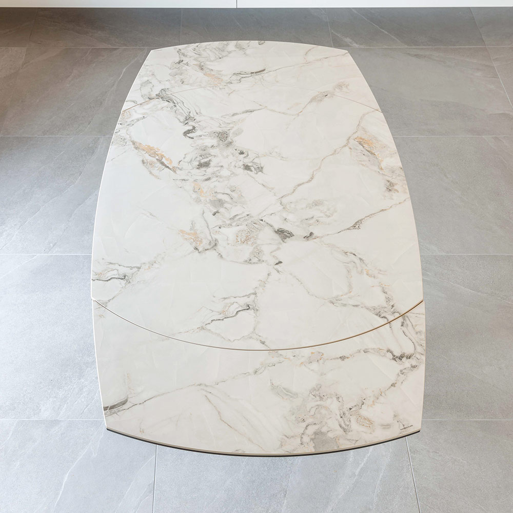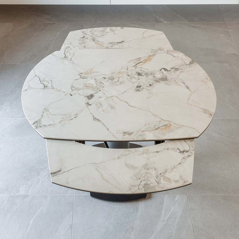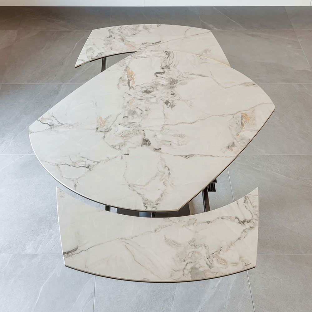 Ausziehbarer Wohnzimmertisch aus Glaskeramik und Metall