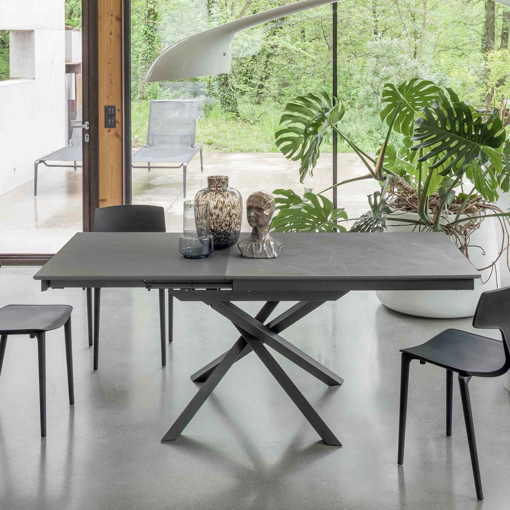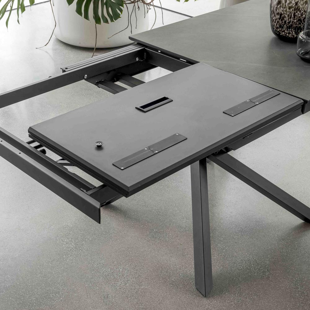 Platte aus mattgrauer Steinkeramik, Verlängerung aus anthrazitfarbenem Melamin und Metallgestell mit geprägtem Graphit-Finish