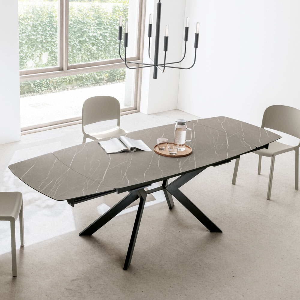 Eleganz und Funktionalität vereinen sich in diesem ausziehbaren Tisch aus HPL und Metall . Er wurde für alle entwickelt, die ein Möbelstück mit starker optischer Wirkung, aber äußerster Funktionalität suchen.