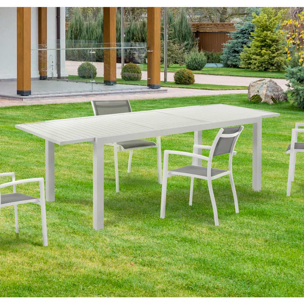 Ausziehbarer Gartentisch aus mattweißem Aluminium