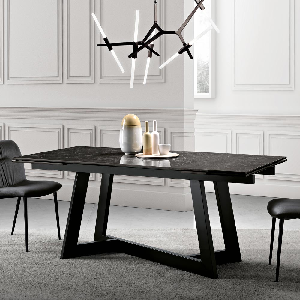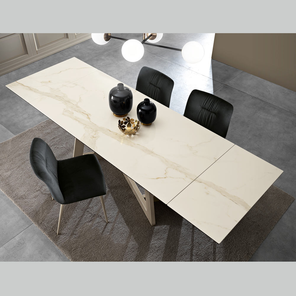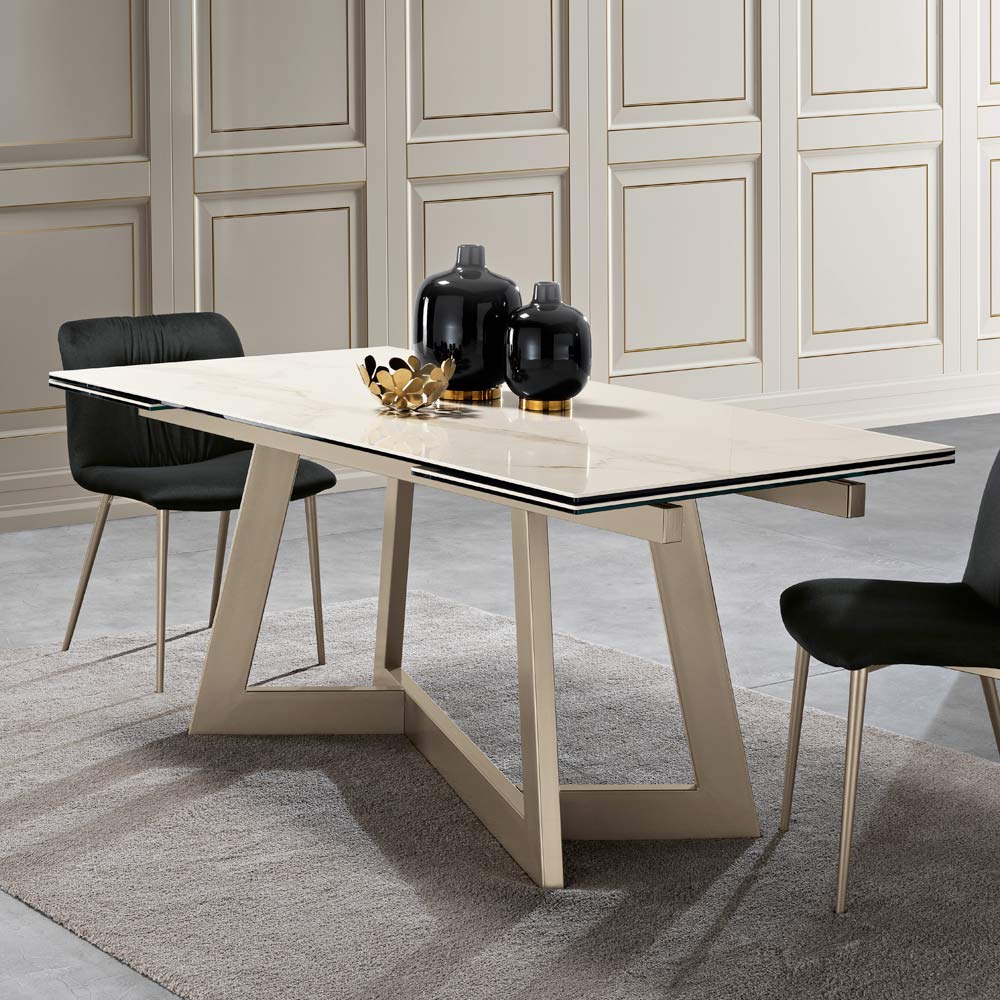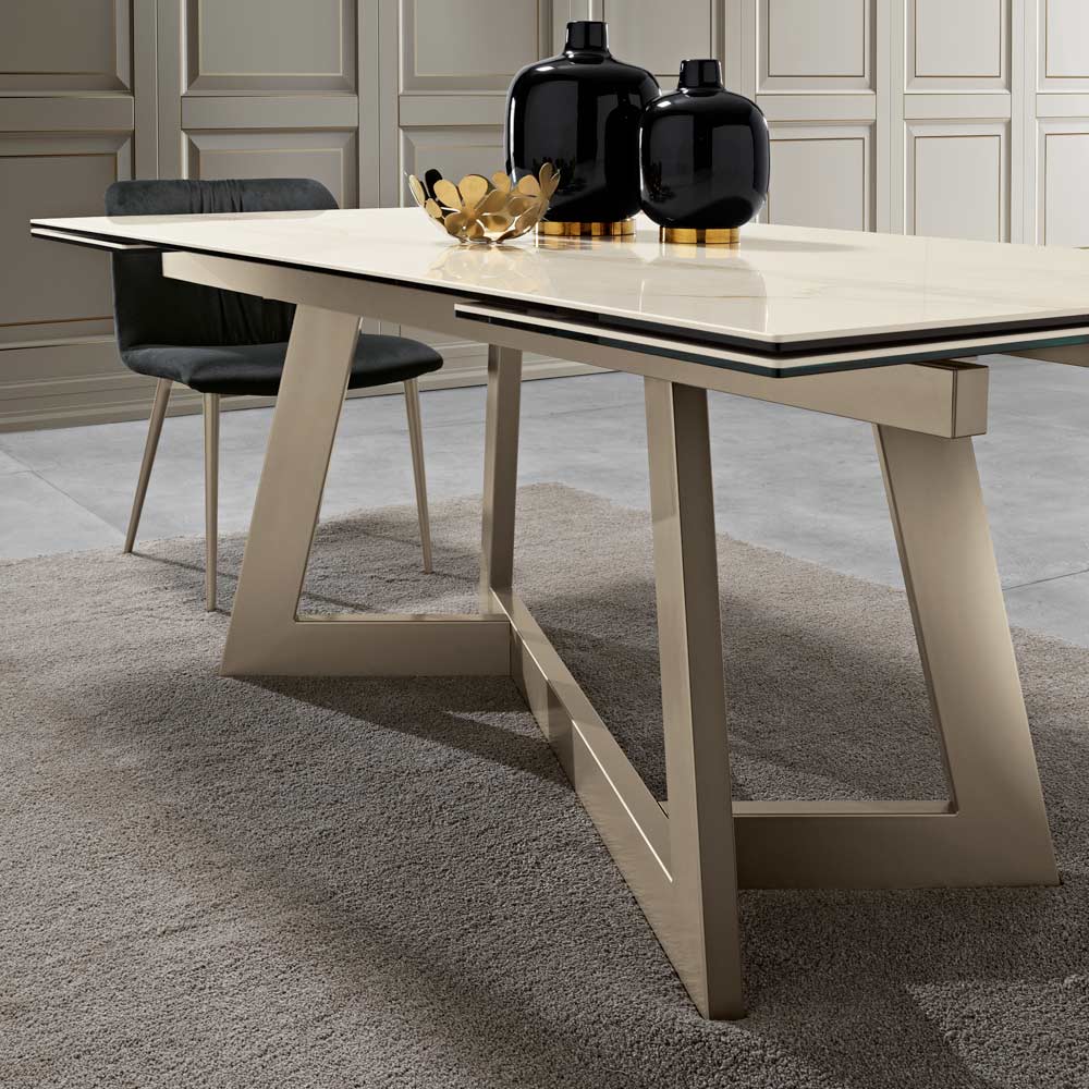 Ausziehbarer Esstisch aus Glaskeramik und Metall Made in Italy