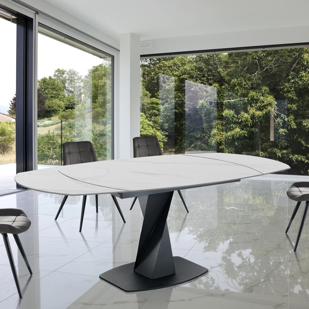 Ausziehbarer Wohnzimmertisch aus Metall und Keramik