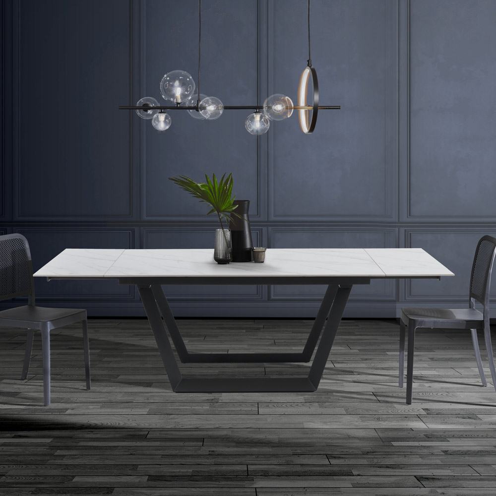Ausziehbarer Wohnzimmertisch aus Stahl und Keramik