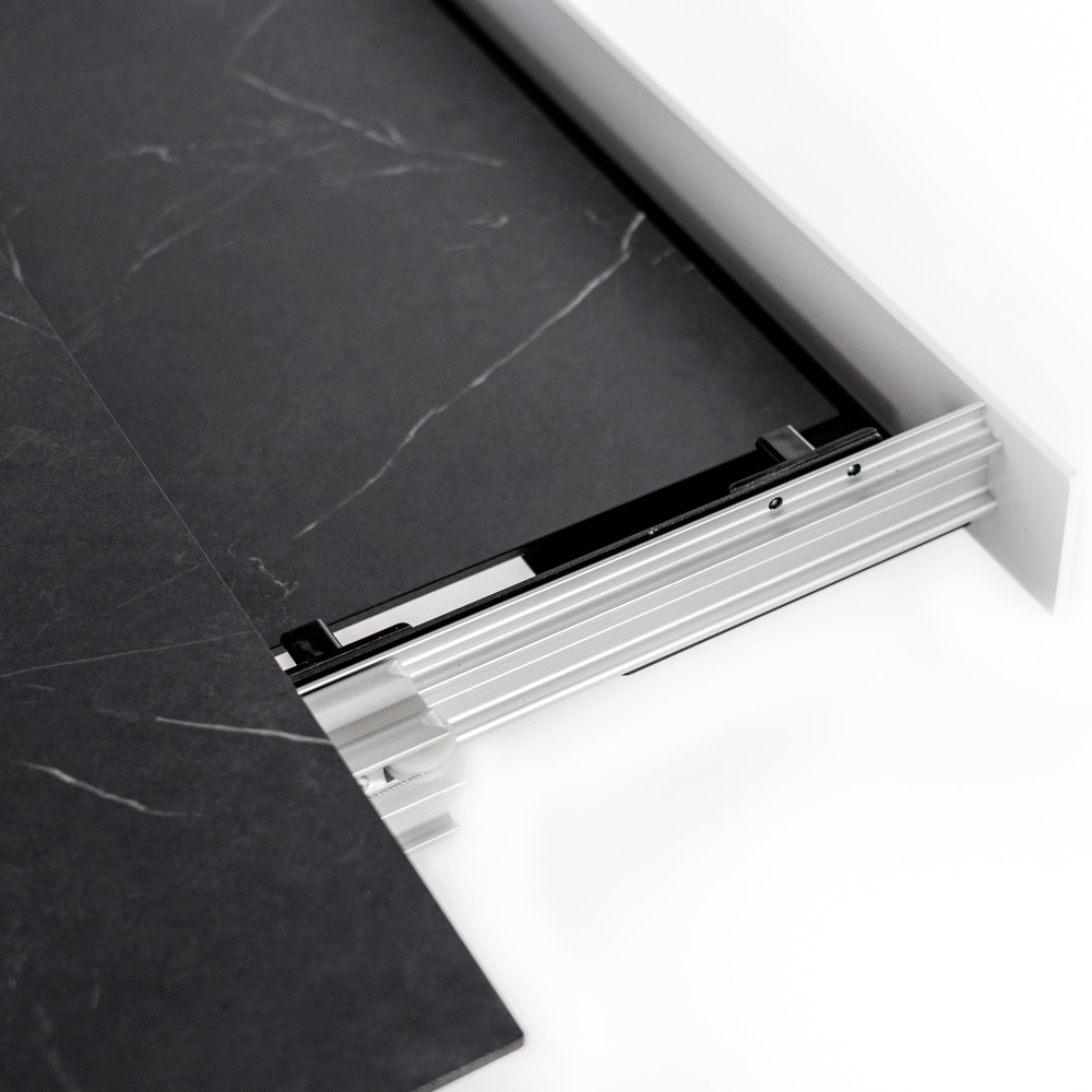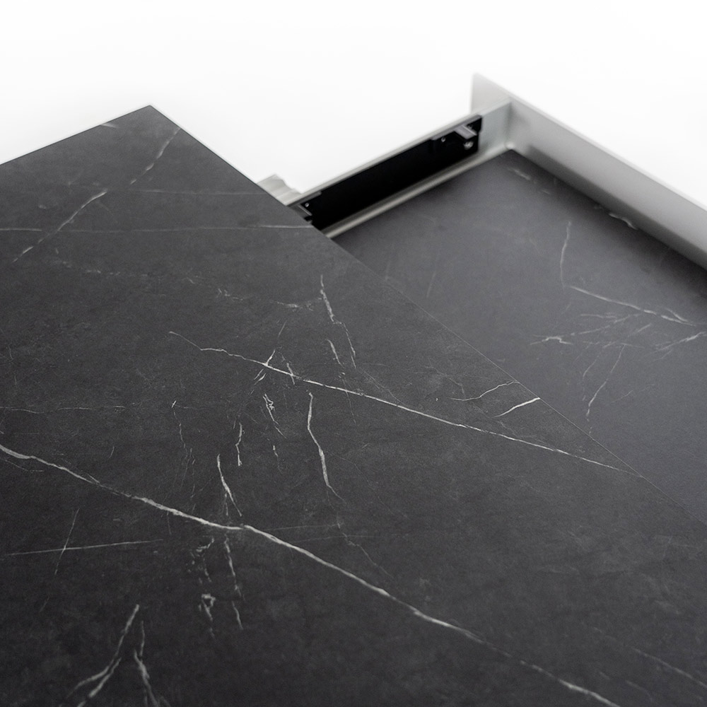 - HPL-Platte mit schwarzem Marmoreffekt, weiße Basis