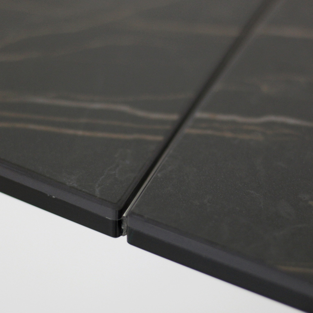 Verarbeitung der Tischplatte:- noir desir poliert (Dicke 10 mm Glas + 5 mm Keramik)