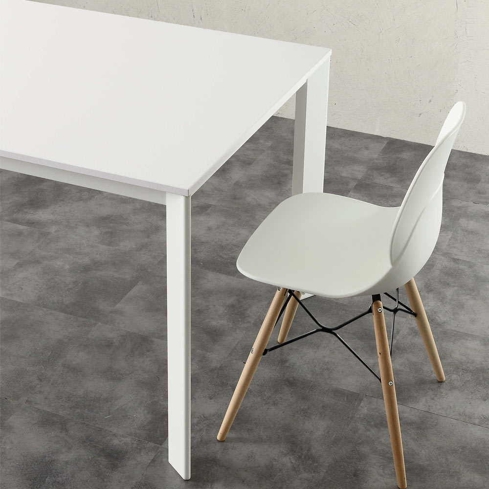 - Struktur aus weiß lackiertem Aluminium. - Platte aus steinweißem Melamin