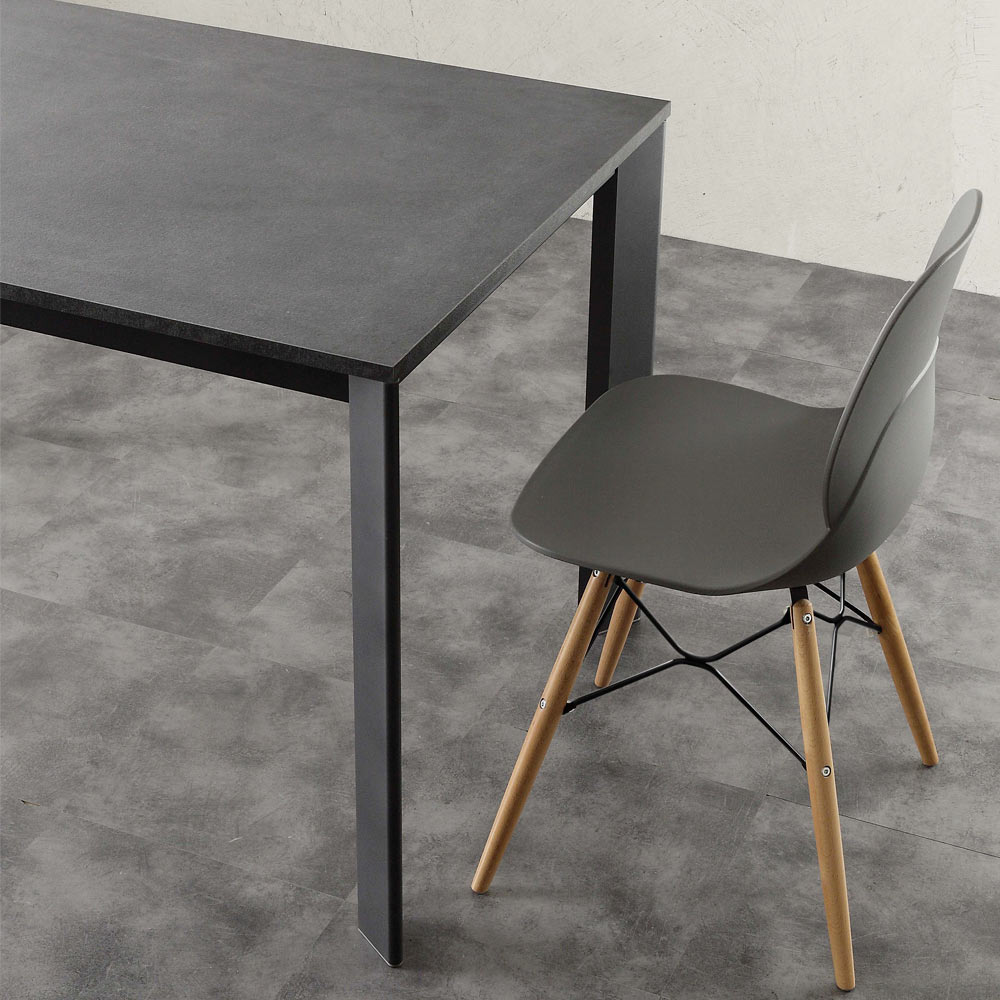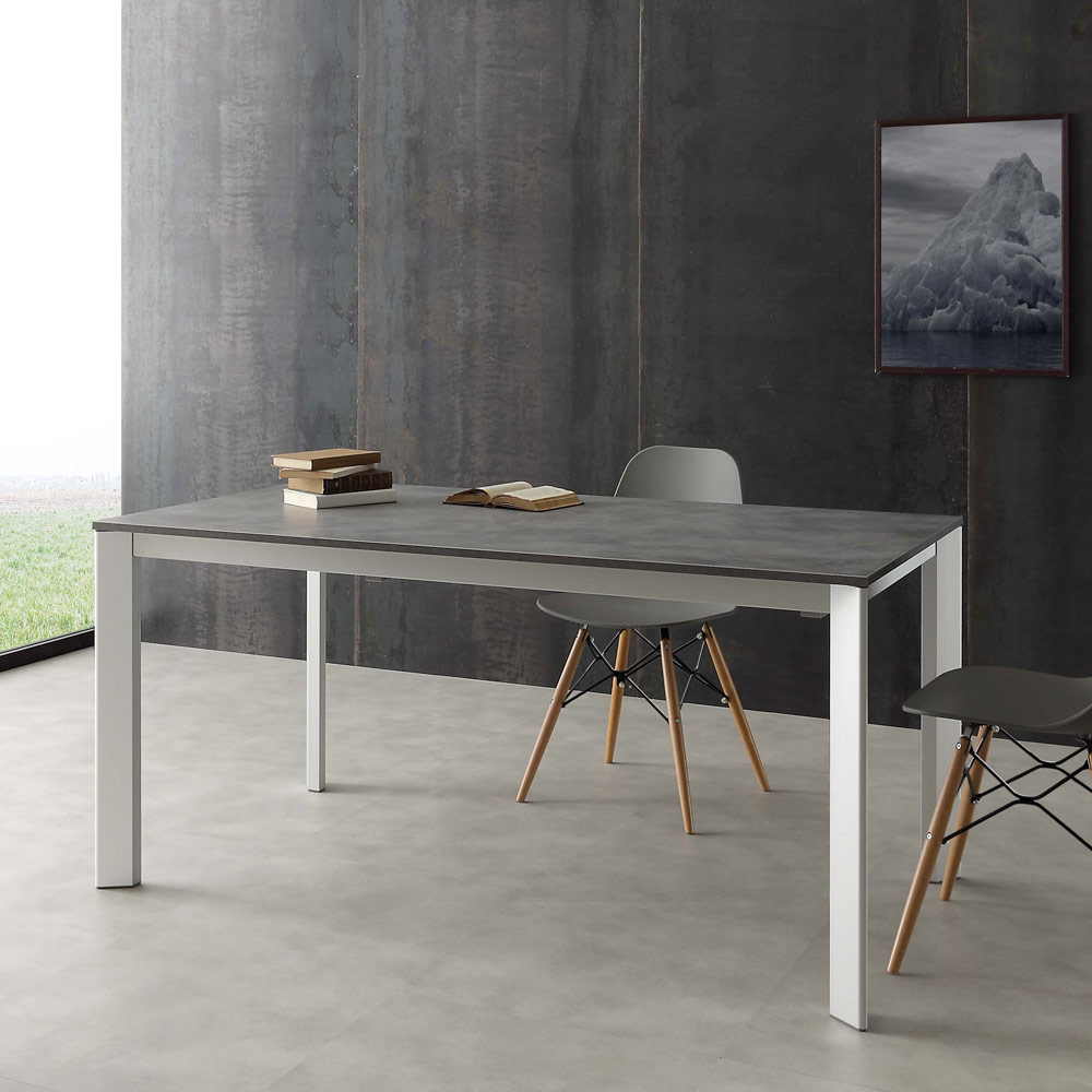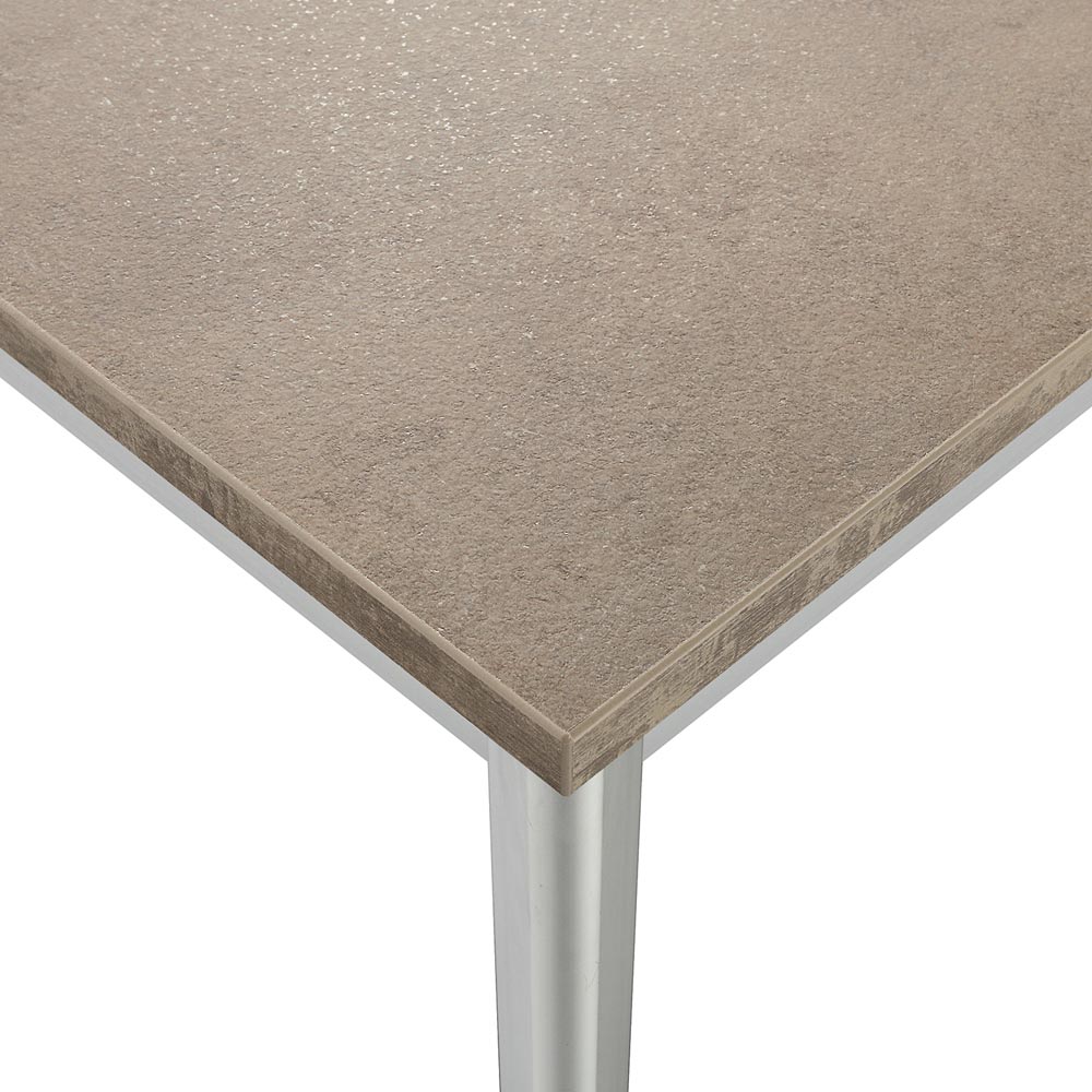 - Struktur aus natur eloxiertem Aluminium. - Tischplatte aus Zementmelamin