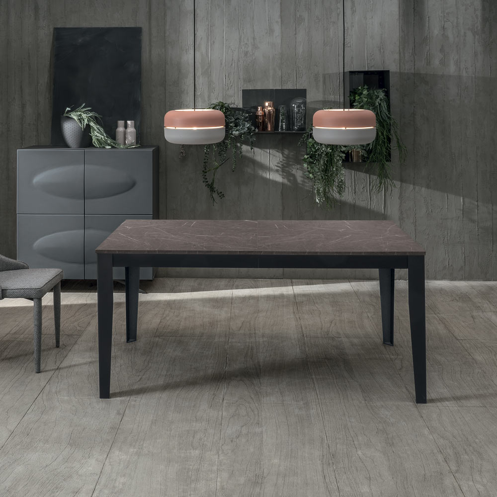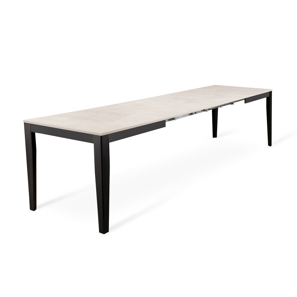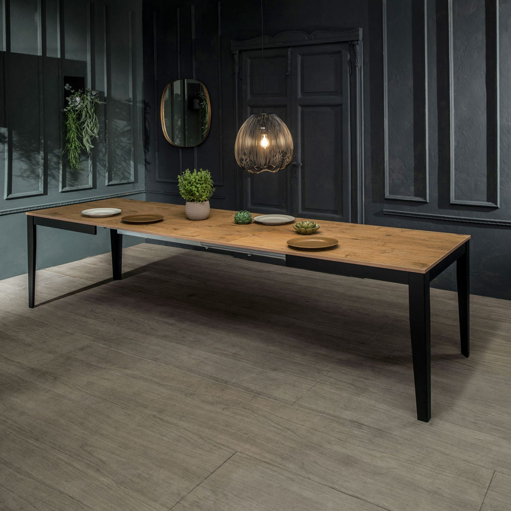 große Dehnbarkeit und Stabilität aus, bietet Platz für bis zu 14 Personen und ist der absolute Protagonist des Wohnbereichs, der verschiedene Emotionen mit sich bringen kann, der zentrale Punkt des Hauses, an dem der Tag beginnt und endet. Die geometrischen und minimalistischen Linien lassen sich geschmackvoll sowohl mit zeitgenössischen Stilen als auch mit rustikaleren und Retro-Stilen kombinieren.