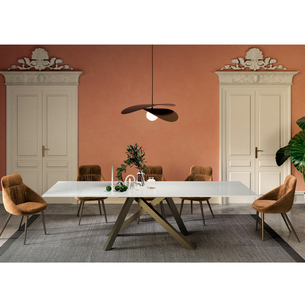 Ausziehbarer Tisch aus Stahl und Glas, hergestellt in Italien
