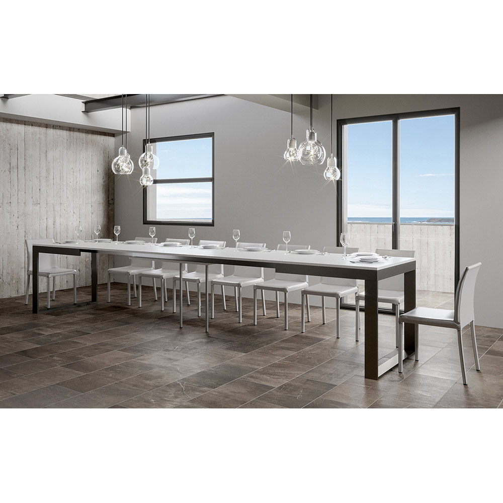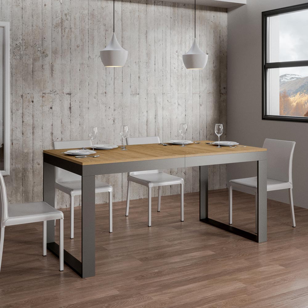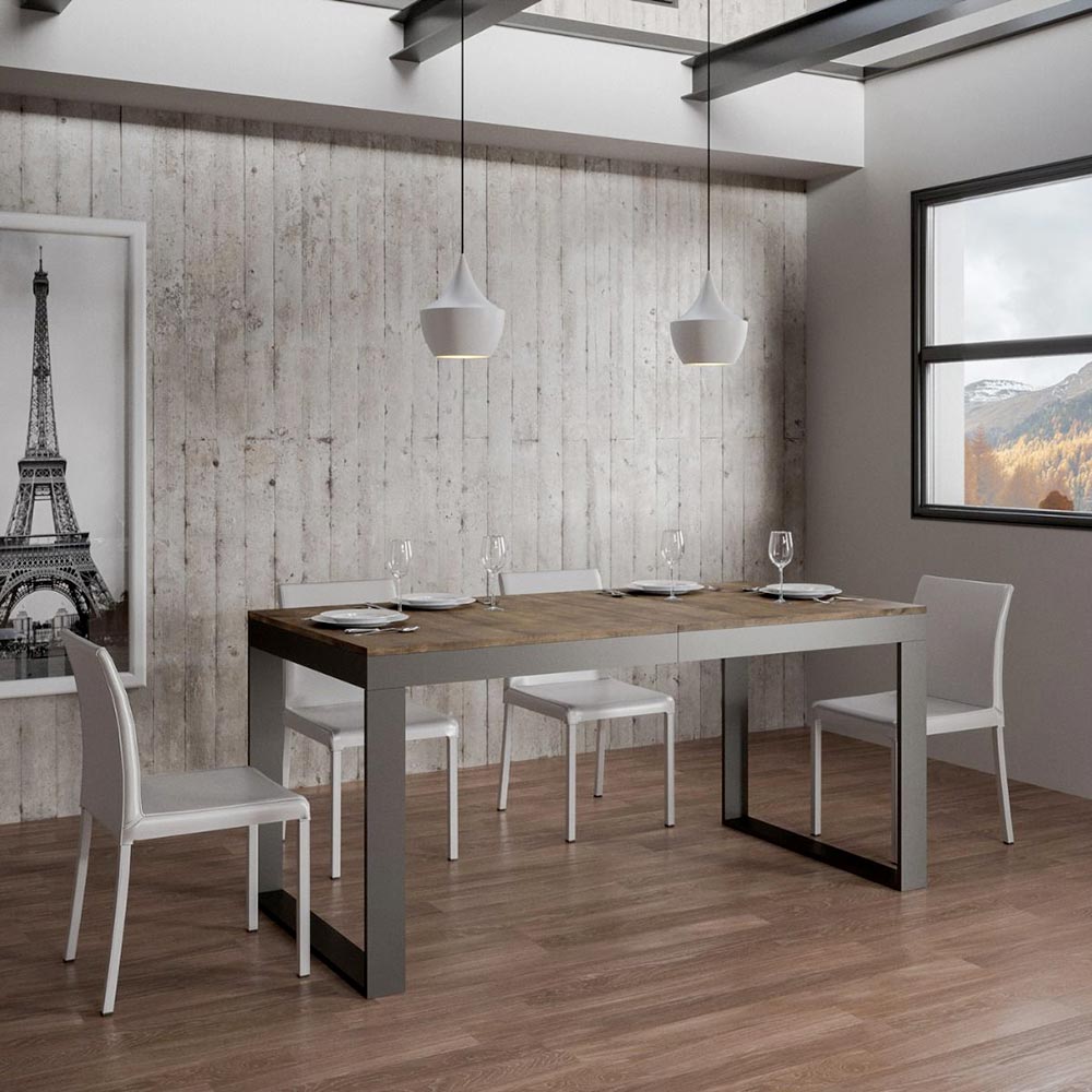 Dieser Tisch zeichnet sich durch seine Vielseitigkeit aus, dank des cleveren Mechanismus, der es ermöglicht, ihn leicht zu verlängern und ihn von einem bequemen Tisch in einen großzügigen Tisch zu verwandeln, der mehrere Gäste beherbergen kann. È er ist ideal für diejenigen, die gerne Freunde und Familie unterhalten oder für diejenigen, die Anpassungsfähigkeit in multifunktionalen Umgebungen benötigen.