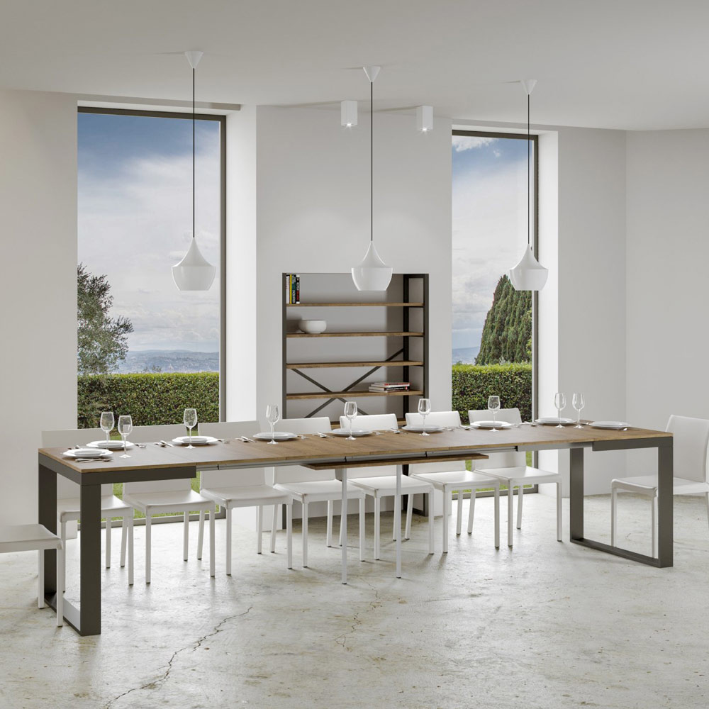 Ausziehbarer Tisch aus furniertem Holz und Eisen in Italien hergestellt