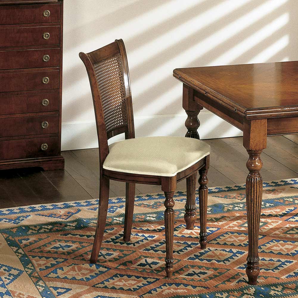 - Stuhl: Struktur aus patiniertem Walnussholz – Sitz aus Juma-Stoff