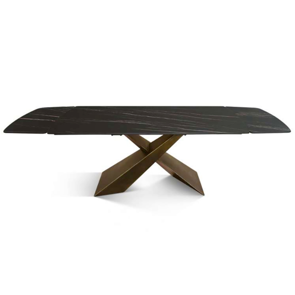 Dieser ausziehbare Tisch mit seinem eleganten und modernen Design wird zum Mittelpunkt Ihres Essbereichs. Die Keramikplatte verleiht ihm eine edle und zeitgemäße Optik und ist gleichzeitig äußerst kratz-, hitze- und fleckenbeständig – perfekt für den täglichen Gebrauch.