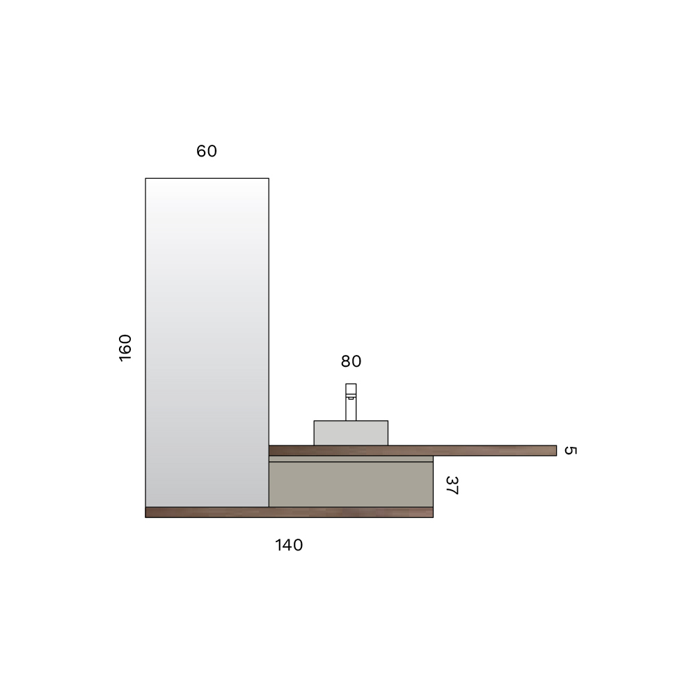 • Spiegel: Länge 60 cm x Tiefe 2,5 cm x Höhe 160 cm