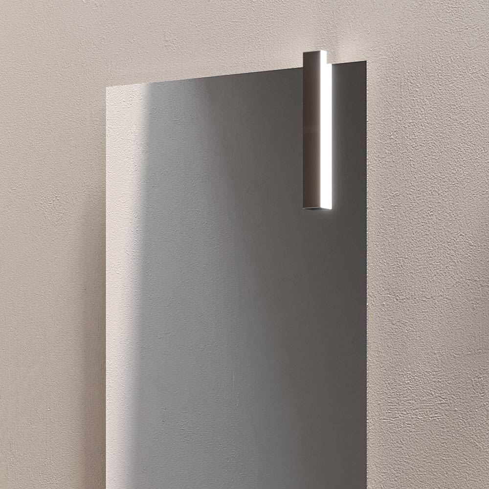 Der 160x60 Spiegel verstärkt die Helligkeit des Raumes, während die LED-Lampe mit Chromfinish für eine präzise und elegante Beleuchtung sorgt, ideal für den Waschbeckenbereich.