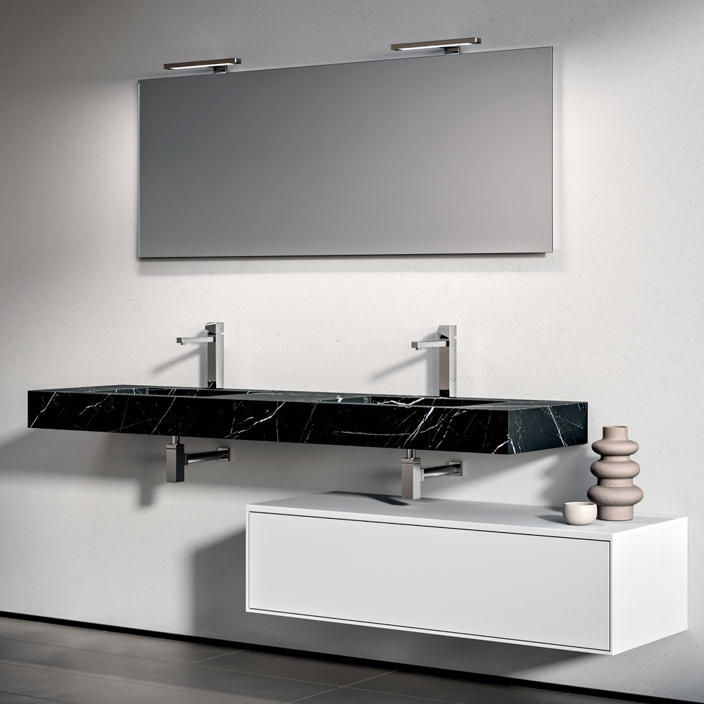 Eine perfekte Lösung für alle, die sich ein Badezimmer mit starker ästhetischer Wirkung wünschen, mit einem Doppelwaschbecken und einer makellosen Balance zwischen Funktionalität und Design.