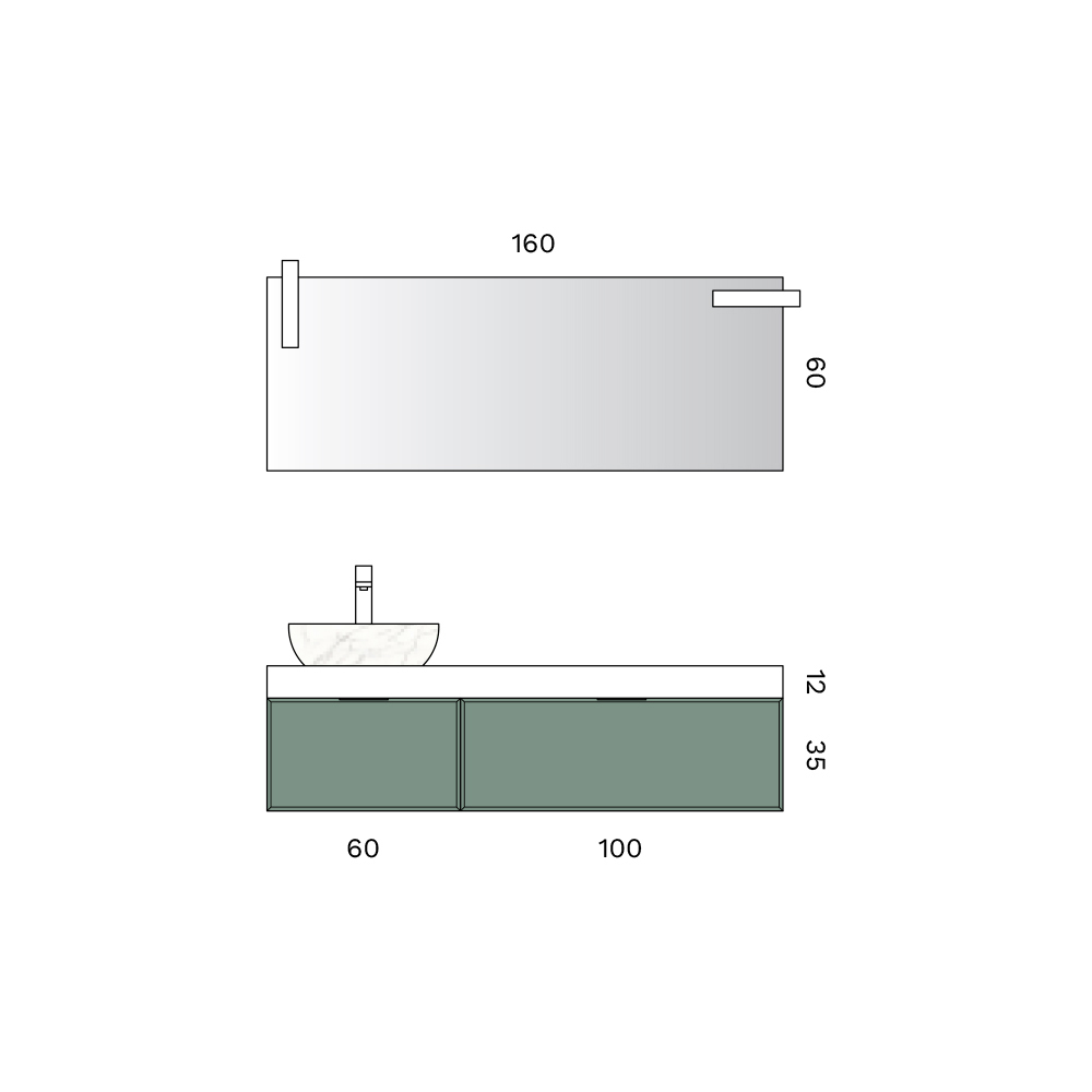 • Spiegel: Länge 160 cm x Höhe 60 cm