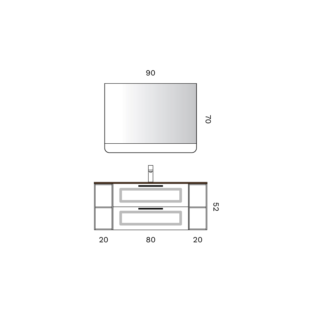 Der wandhängende Unterschrank mit Doppelschublade und offenen Fächern besticht durch sein klares, minimalistisches Design, das optische Ausgewogenheit und alltägliche Funktionalität vereint. Das integrierte Steingutspülbecken verleiht der Oberfläche eine tiefe, strukturierte Optik, inspiriert von den natürlichen Farbtönen oxidierter Metalle.