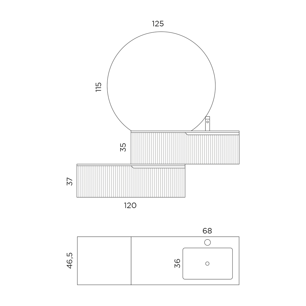 - Waschbecken: Länge 121 x Tiefe 46,5 x Höhe 1,6 cm - Beckenlänge 53 cm