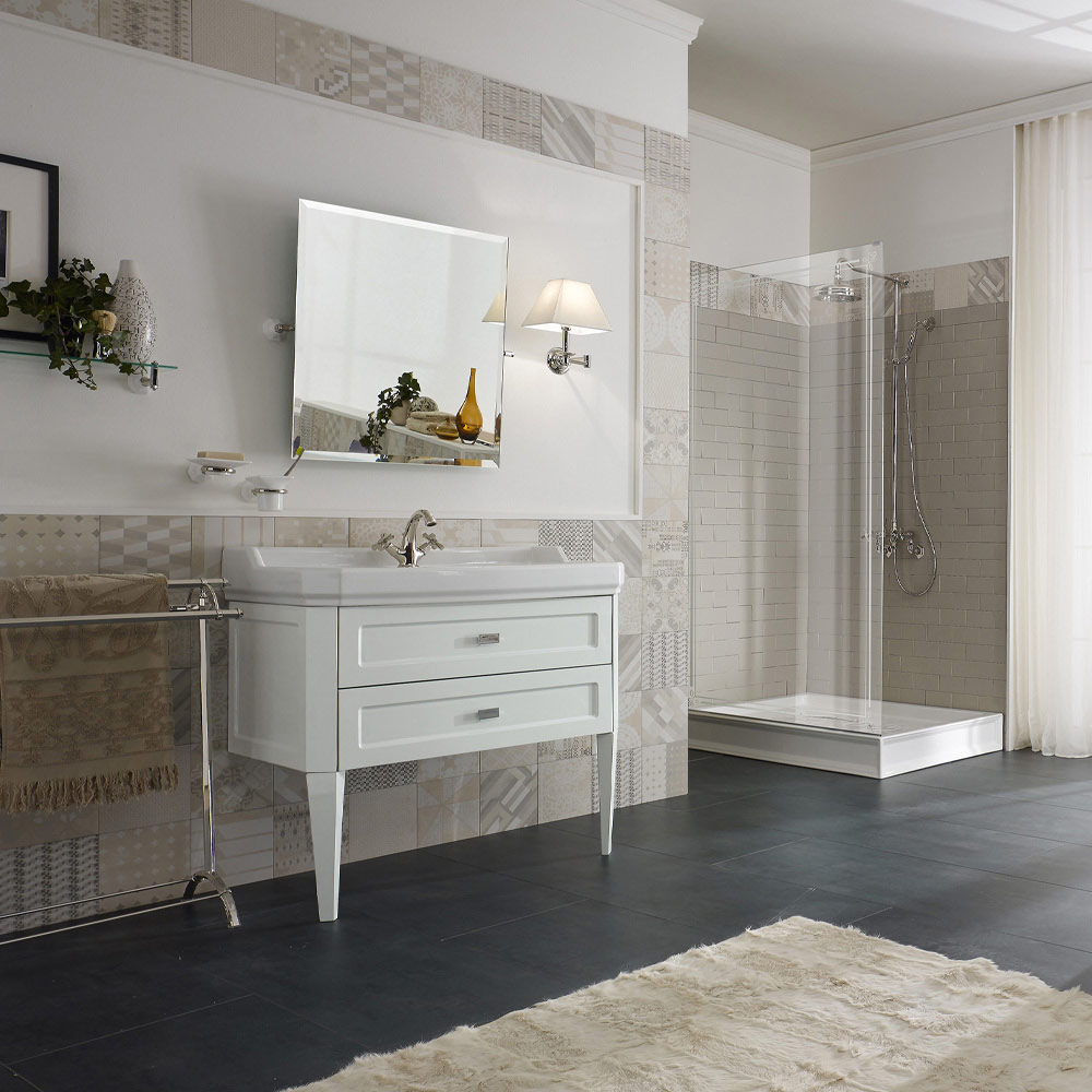 Badezimmerschrank mit zwei Schubladen und Keramikwaschbecken, hergestellt in Italien – Rom