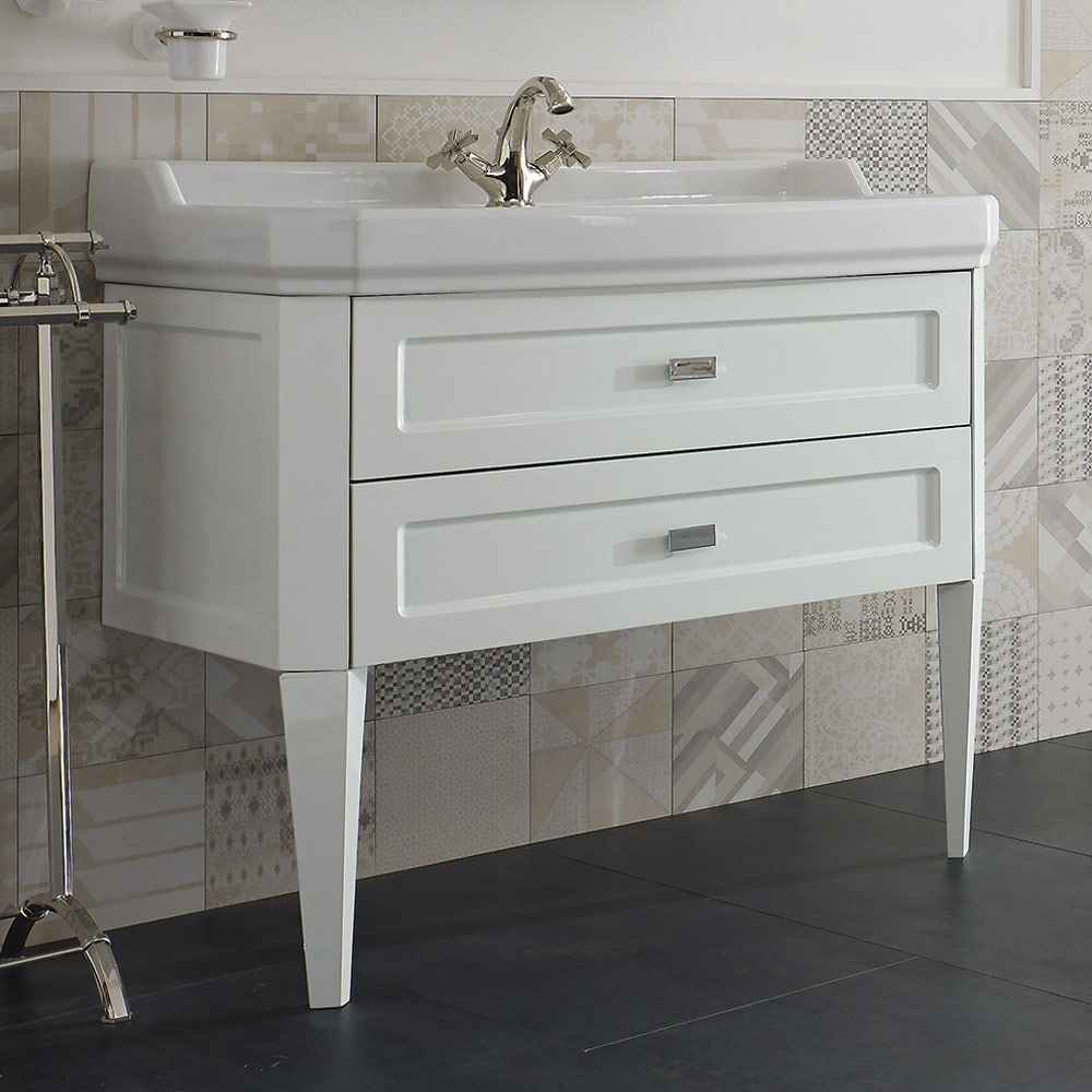 Biancospino Badezimmerschrank mit zwei Schubladen und Keramikwaschbecken, hergestellt in Italien